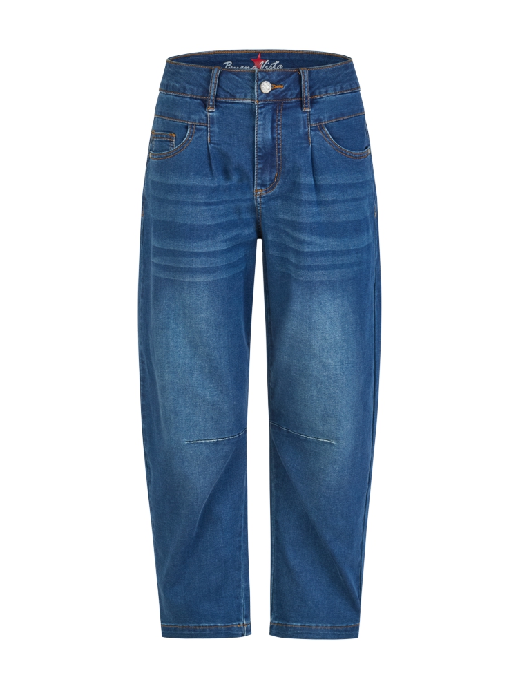 Trendige Barrel-Form, weite Oberschenkel, zum Fußnde leicht enger werdend mit vielen Details. High Waist. Bundfalte. Reißverschluss.