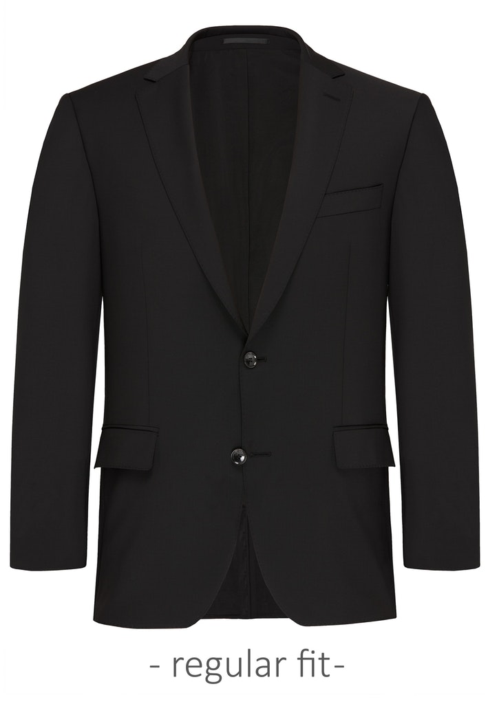 Passform: regular fit, Sakkolänge ca. 75,2 cm in Größe 50, Ärmellänge ca. 64,5 cm in Größe 50, Umlaufweite ca. 108,6 cm in Größe 50, AMF-Steppung, Besondere Dehnbarkeit im Oberstoff und Futter, Extrem knitterarm, 2-Knopf-Sakko, Revers in Winkelfasson, Pattentaschen, Brustleistentasche, Rückenschlitz, Innentaschen, Unifarbenes Stretch-Innenfutter