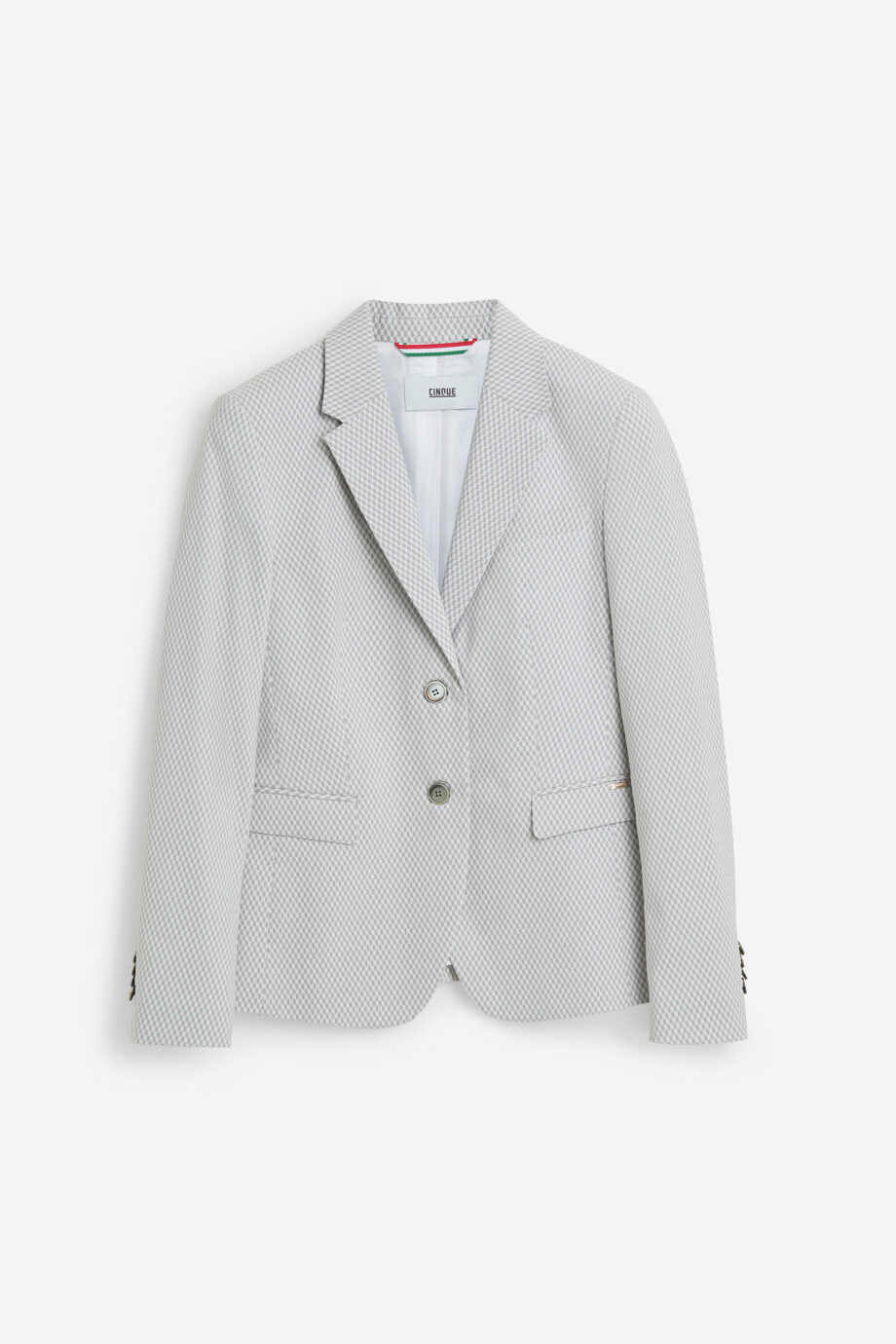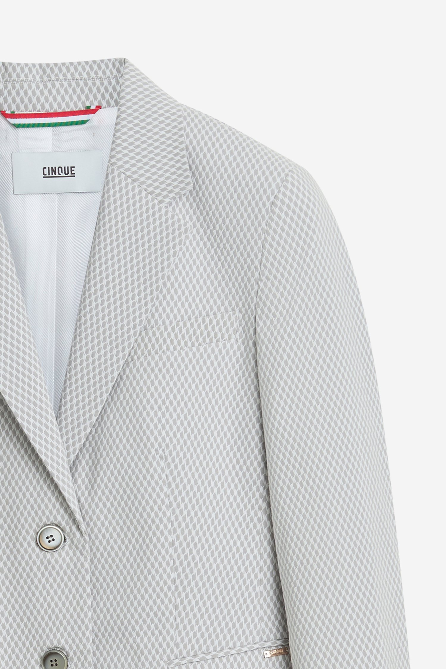 Ein Blazer, der vor allem durch sein elegantes Jacquard überzeugt – klassische Details wie der Reverskragen und aufgesetzte Pattentaschen runden den Style ab.