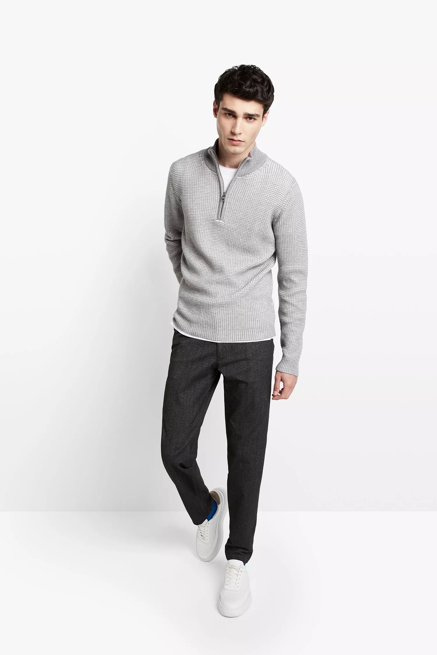 Moderne Pfeffer und Salz-Optik und schlanker Passform.