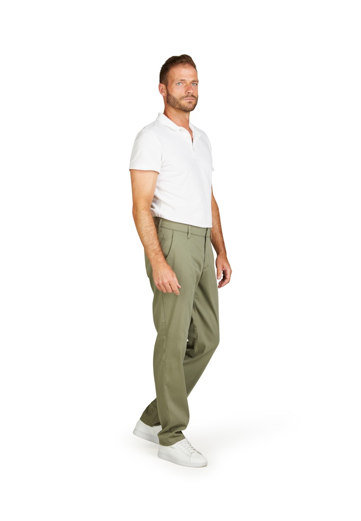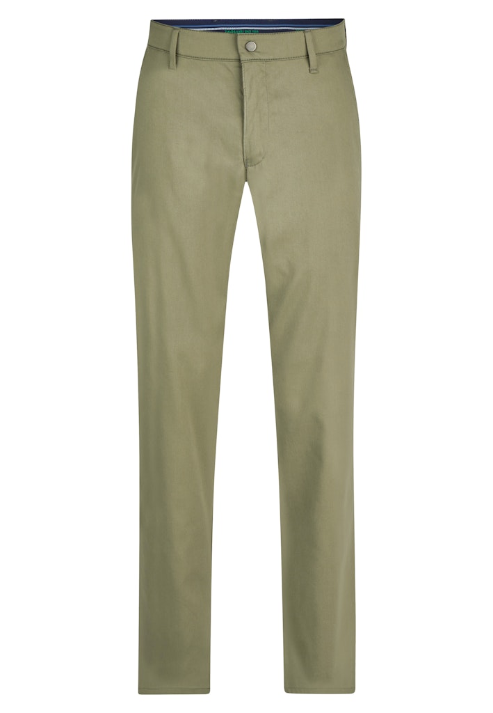 Bequeme Chino im Tapered Fit mit elastischem Comfortbund und Hemdstopper. Gefertigt aus einem innovativem Techno-Cotton in High Stretch-Qualität mit cleanem Look. Gewicht: 320 g/lfm Das Modell bietet eine normale Leibhöhe, ein Plus an Gesäß- und Oberschenkelweite und einen schmalen Beinverlauf.