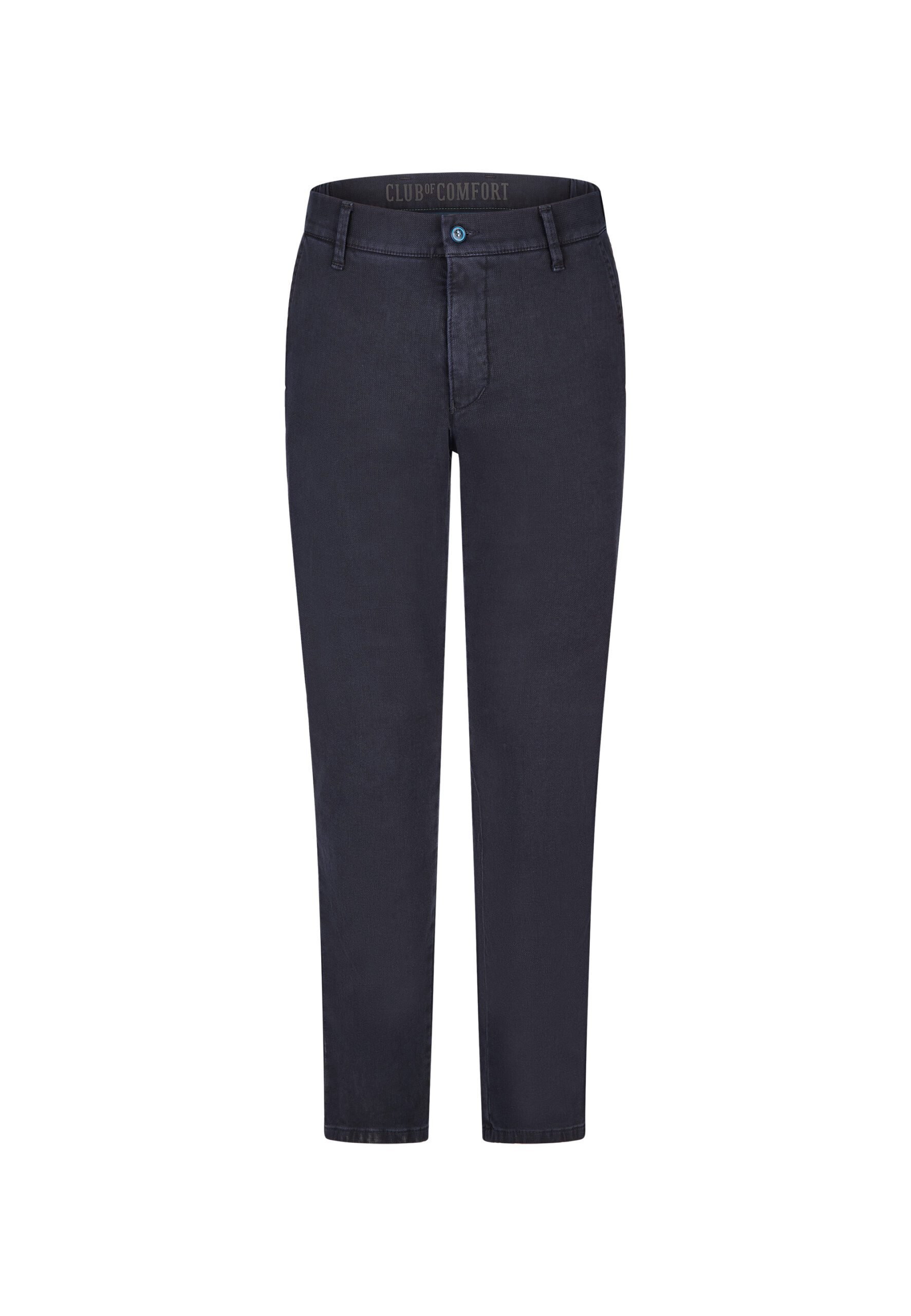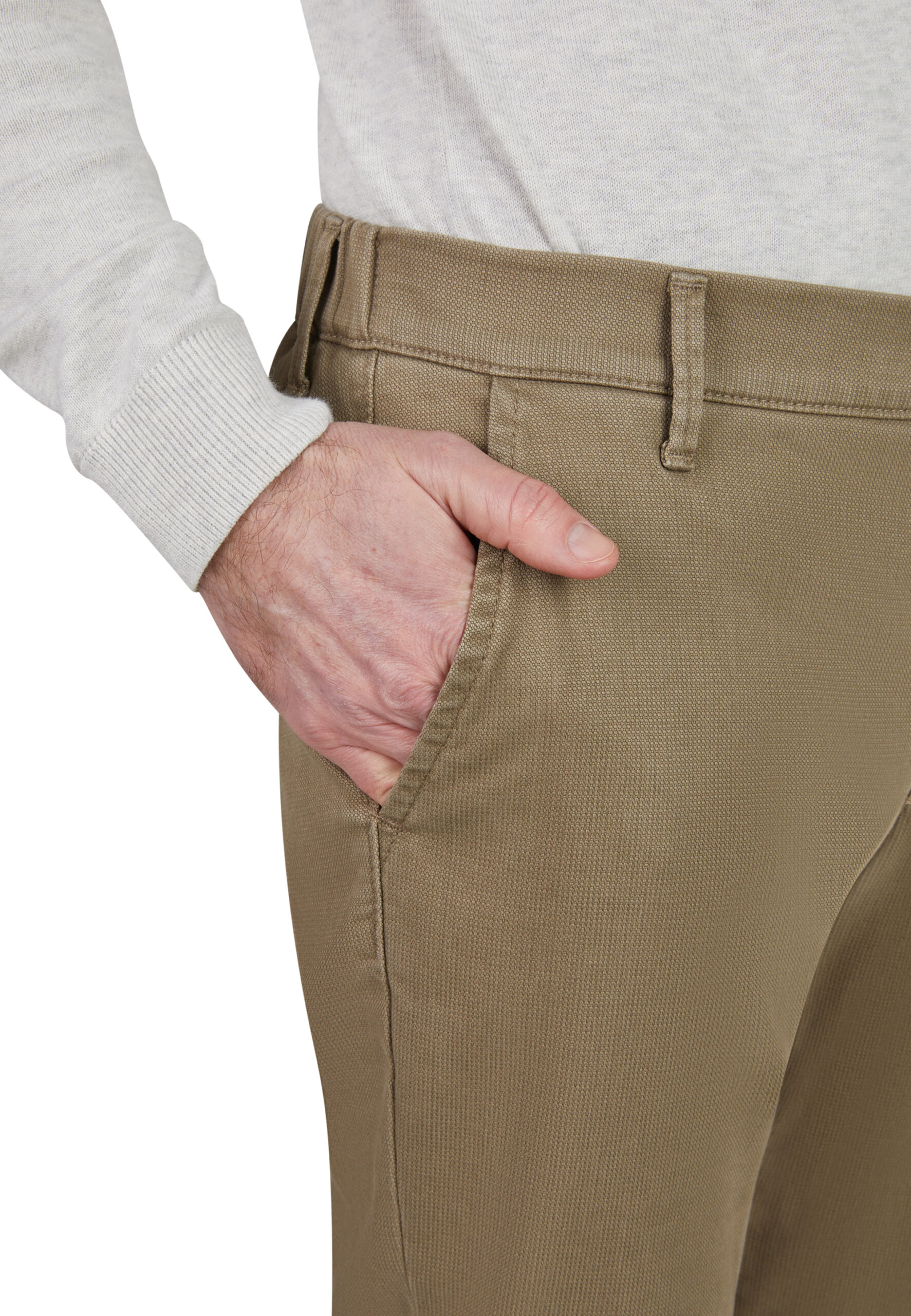 Super bequeme Chino im Slim Fit mit superelastischem Smokbund und Hemdstopper. Gefertigt aus einer hochelastischer High Stretch-Baumwolle in wunderschöner Dobby-Struktur. Das Double Dye-Verfahren verleiht der Hose einen casualigen Look.Gewicht: 445 g/lfm Das Modell bietet eine mittlere Leibhöhe und ein schlankes Bein bei schmaler Fußweite.