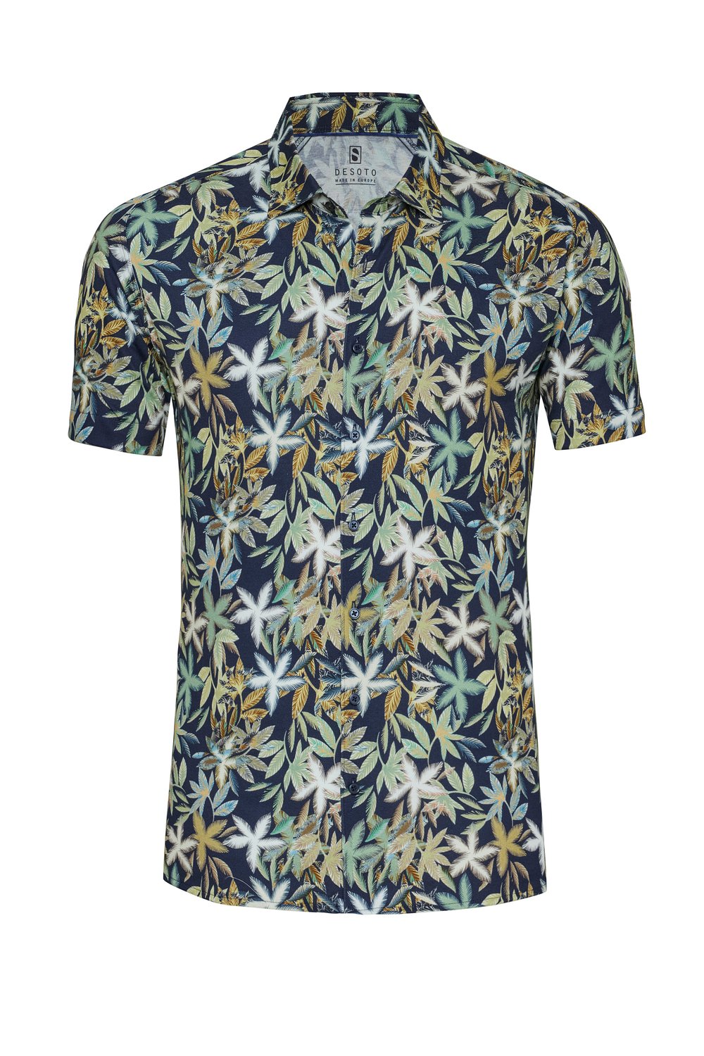 Hemd mit Kurzarm, Alloverprint, bügelfreier Baumwoll-Jersey