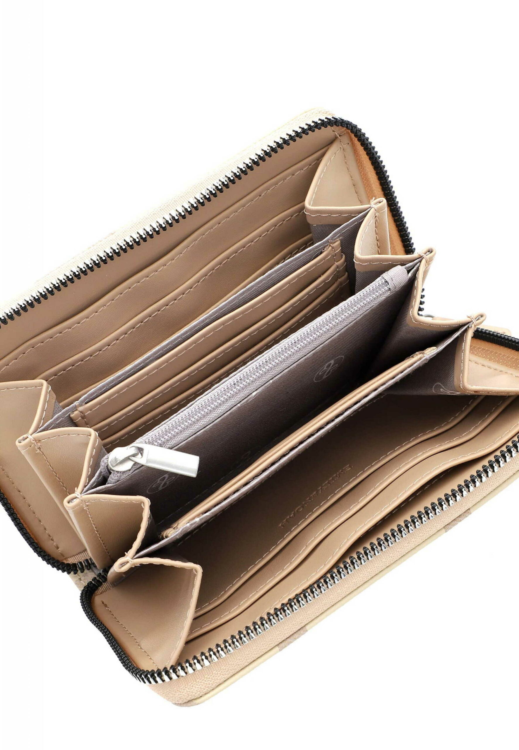 EMILY & NOAH – für modebewusste Frauen, die wissen, was ihnen gefällt Ein Eyecatcher, der an der Kasse einfach jeden begeistert. Die Geldbörse Ilona kommt in Print-Design mit Reißverschluss und bietet ausreichend Platz für Bargeld und Karten. Die Marke EMILY & NOAH bietet tierfreundliche Styles und Designs an, die vollständig aus veganen Inhaltsstoffen hergestellt sind. Dafür steht auch das durch die PETA verliehene Logo „PETA-Approved Vegan“, welches beste Standards bei der Herstellung ohne tierische Inhaltsstoffe verspricht. Gefertigt ist das Modell, das sich mit einem Reißverschluss verschließen lässt, aus Feinsynthetik. Durch das Material ist es angenehm im Griff. Mit ihrer glatten Optik und dem Print-Design ist die hochwertige Geldbörse ein echter Hingucker. Mit den attraktiven Accessoires von EMILY & NOAH zeigt jede Frau mit Modebewusstsein ihre stylische Seite, denn die Produkte passen zu Frauen, die wissen, was sie wollen. Ordnung ist das halbe Leben. Ein übersichtliches Hauptfach sind in der Tasche integriert. Das Modell Ilona ist von der Haptik eher weich und daher besonders angenehm zu tragen. Für das süße Extra sorgt die Applikation mit dem Logo-Anhänger, die einen zusätzlichen Akzent setzt. Eine Geldbörse ist das Must-Have für einen spannenden Abend oder die Vernissage in der angesagten Galerie. Damit ist für genug Platz für das Handy, Geld und den Lieblingslippenstift gesorgt. Mit 6 Kreditkartenfächern und einem Reißverschluss-Münzfach hat das Portemonnaie ausreichend Platz für Bargeld und Karten.