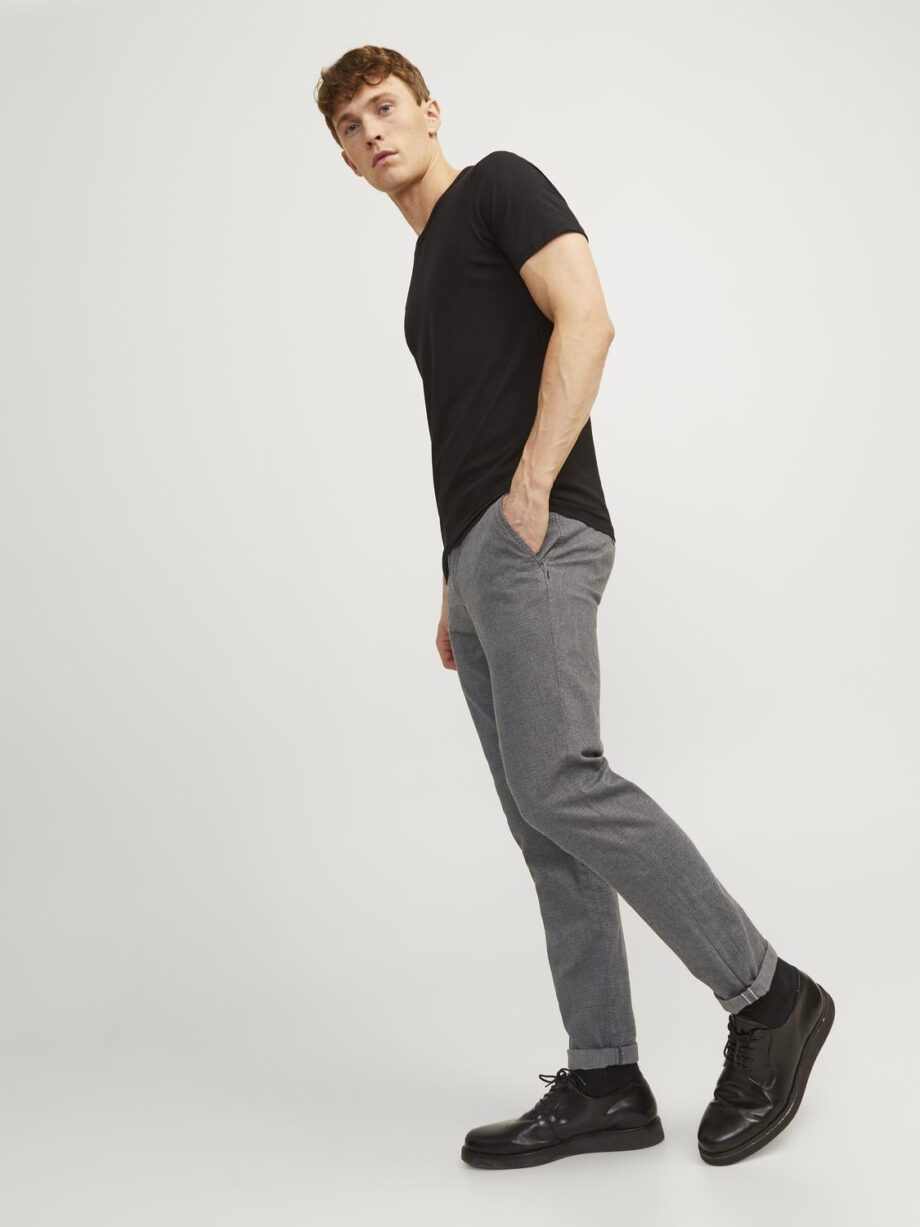 Die Chino-Hose ist in dieser Kategorie ein essenzieller Style. Sie steht zwischen Anzughose und lässiger Five-Pocket-Hose. Das Styling ist schlicht, Taschen gibt es nur vorn und hinten.Hergestellt mit einer speziellen Webart, die dem Schaftgewebe ein geometrisches Muster verleiht. – Produkttyp : Chino Hose – Verschluss : Reißverschluss – Taille : Niedrige Taille – Länge/Größe : Verkürzt, knöchellang – Beindetails : Säume zum Umschlagen – Passform : Slim Fit Jeans mit niedriger Leibhöhe, schmalem Oberschenkel, schmalem Knie und enger Beinöffnung