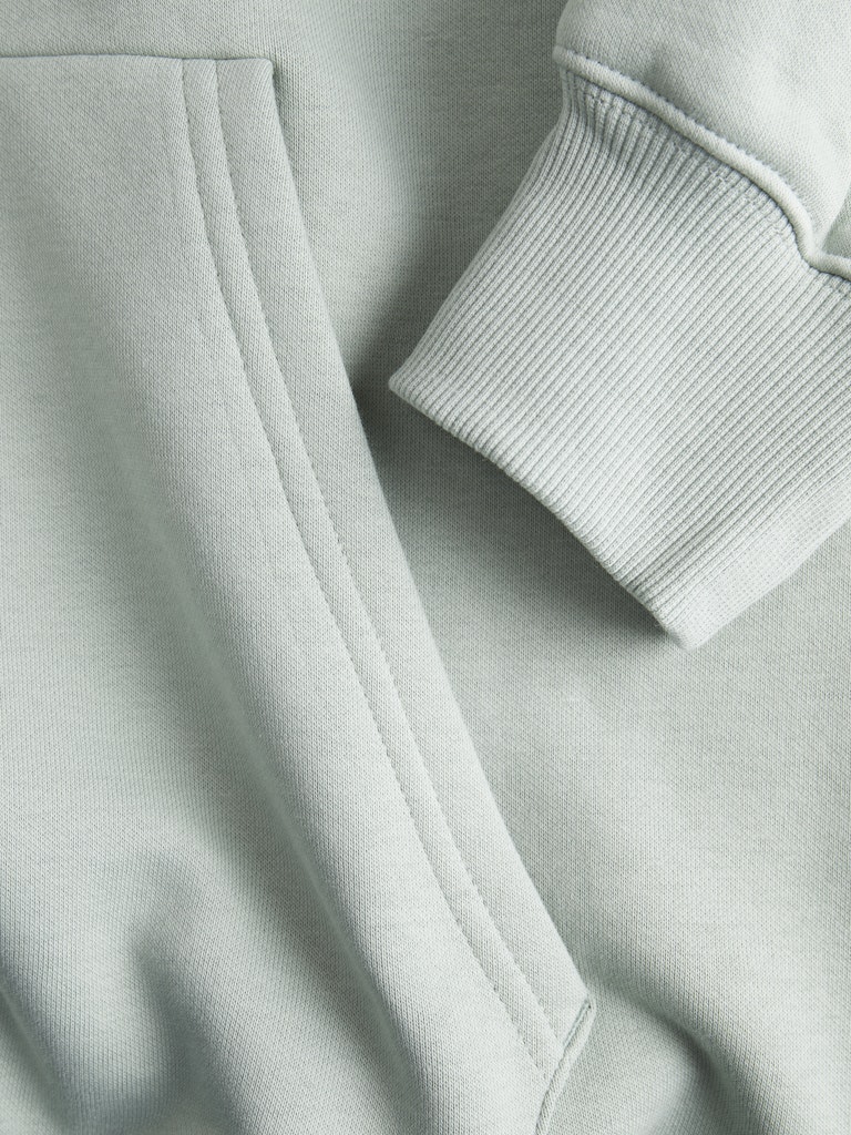 Angerauter Stoff mit einer weichen Innenseite. Leicht angeraute Stoffe haben eine etwas flauschigere Innenseite, die sich weich anfühlt.