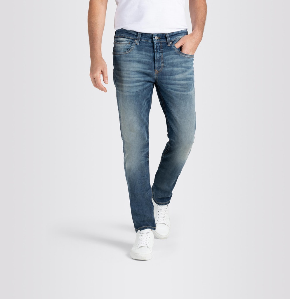 Modern Fit 5-Pocket-Form kerniger Vintage-Denim authentisch und maskulin hohe Elastizität gemäßigte Leibhöhe reduzierter Beinverlauf Fußweite bei Größe 36: 37 cm