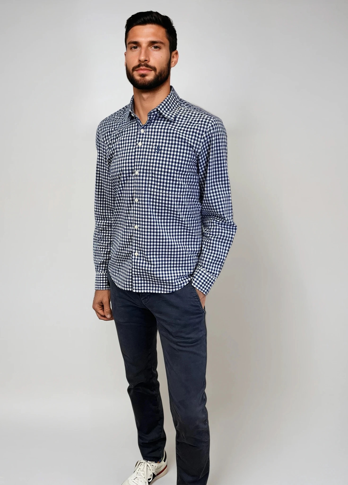 Zeitlos, sportlich, hochwertig: Das langärmelige MARC O'POLO Herrenhemd präsentiert sich im klassischen Vichy-Karo in Blau und Weiß. Gefertigt aus reiner, zertifizierter Bio-Baumwolle in glatter Popeline-Qualität bietet es nicht nur ein angenehmes Tragegefühl, sondern auch eine nachhaltige Materialwahl. Der Kentkragen, die Knopfleiste, lange Ärmel mit Zwei-Knopf-Manschetten und der abgerundete Saum unterstreichen den Regular Fit dieses vielseitigen Klassikers. Perfekt für Büro und Freizeit – kombinierbar zu Jeans, Chinos oder unter einem Pullover.