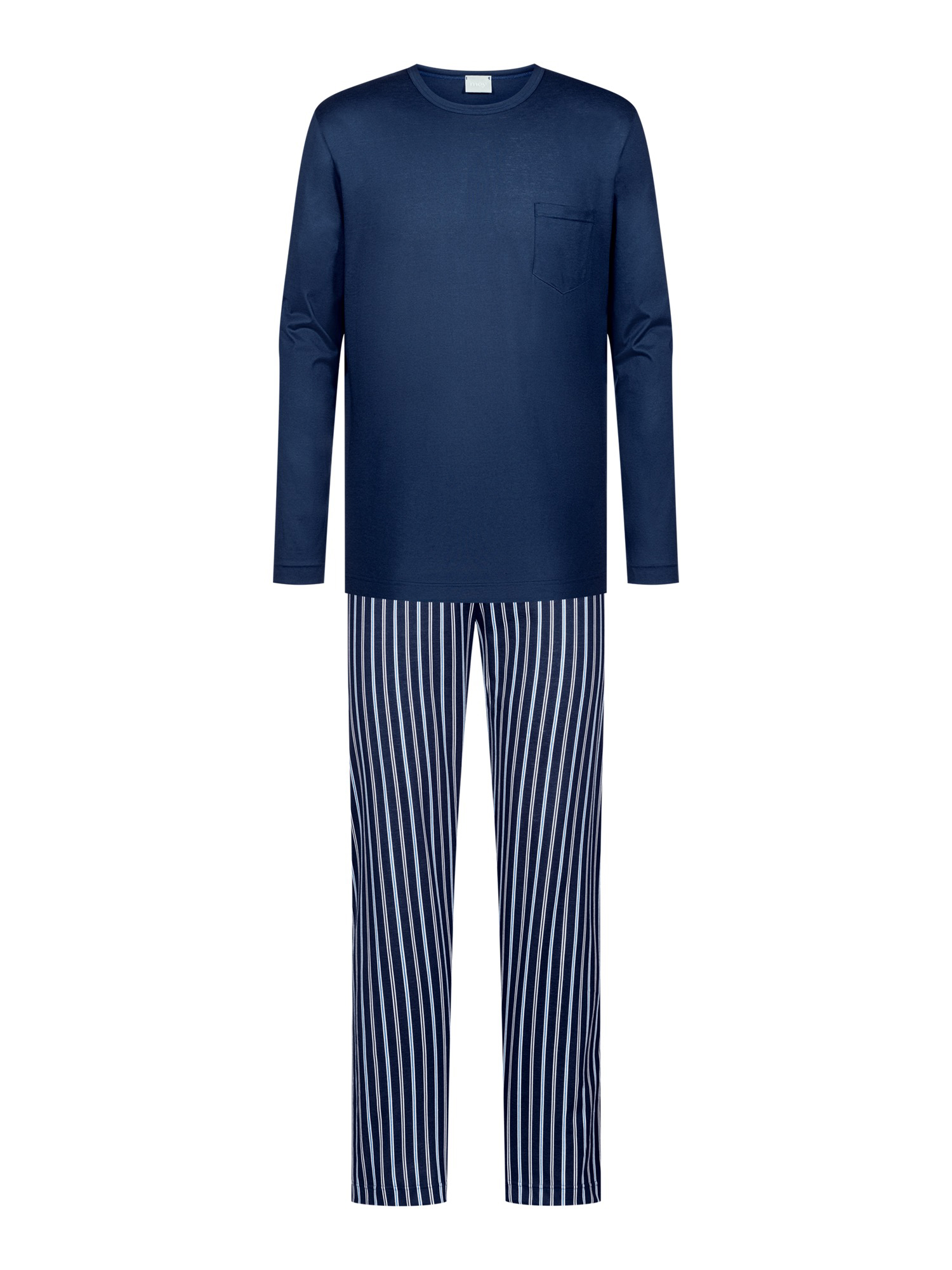 Rundhals, langer Ärmel, lange Beinlänge, gestreifte Hose, ohne Bündchen