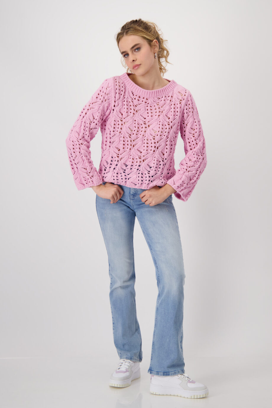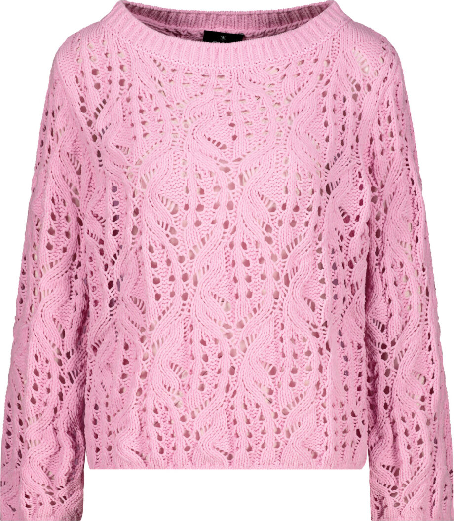 Dieser trendige Pullover aus weichem Chenillegarn besticht durch sein elegantes Ajourmuster und den klassischen U-Boot-Ausschnitt.