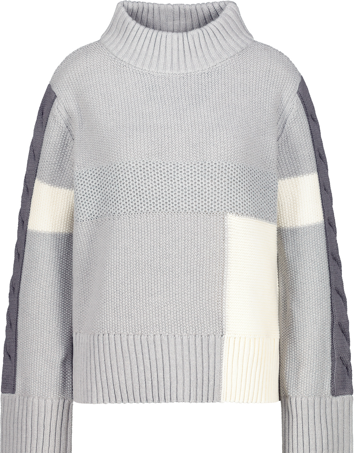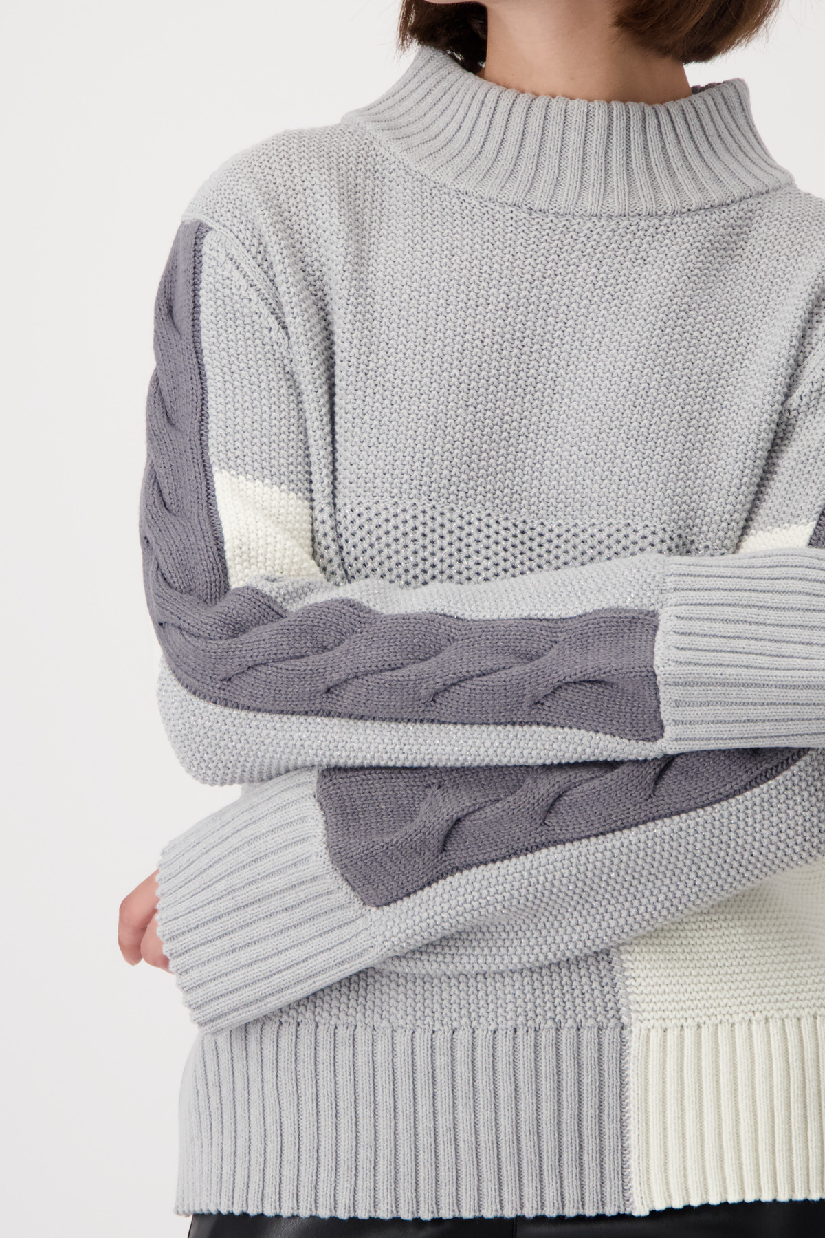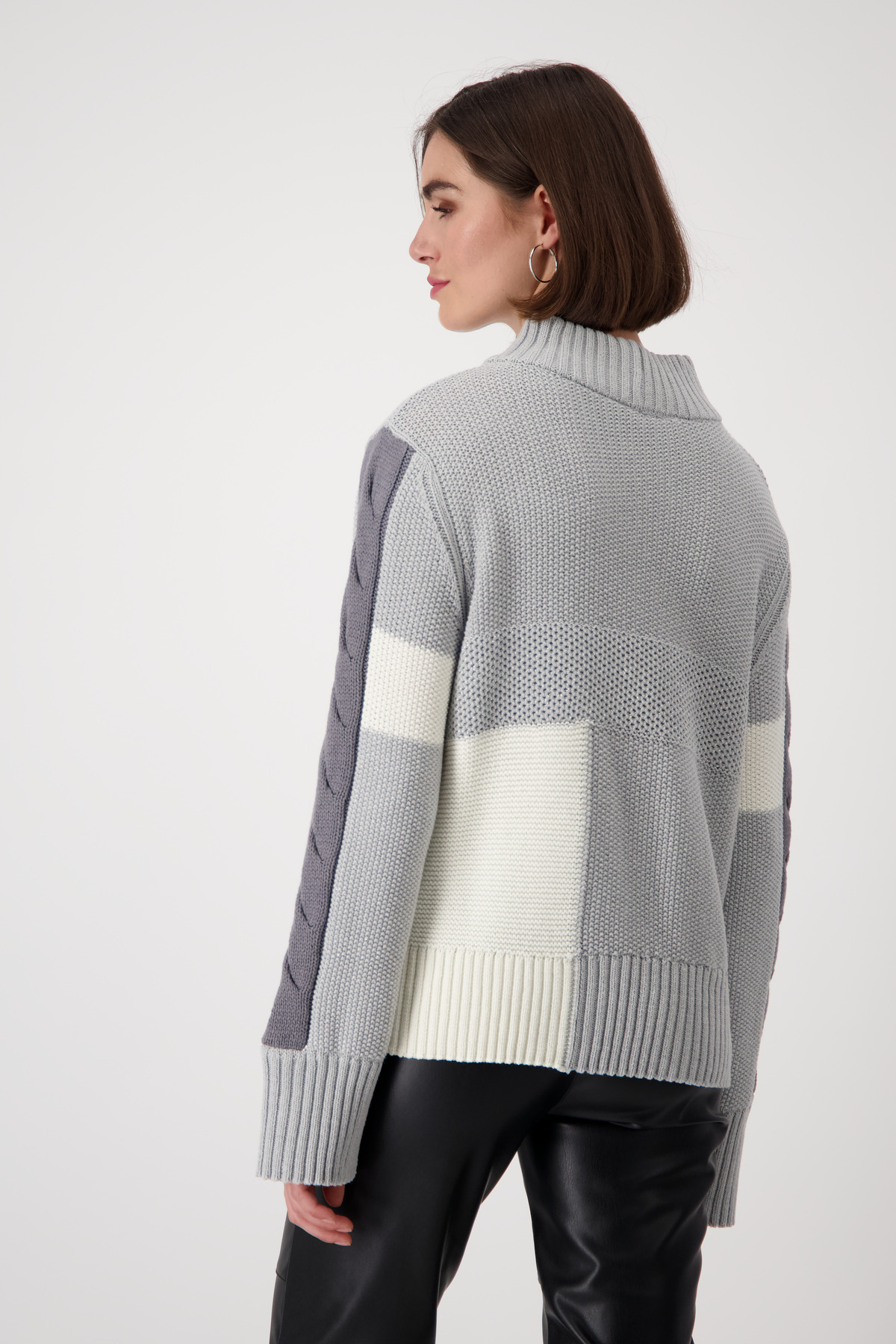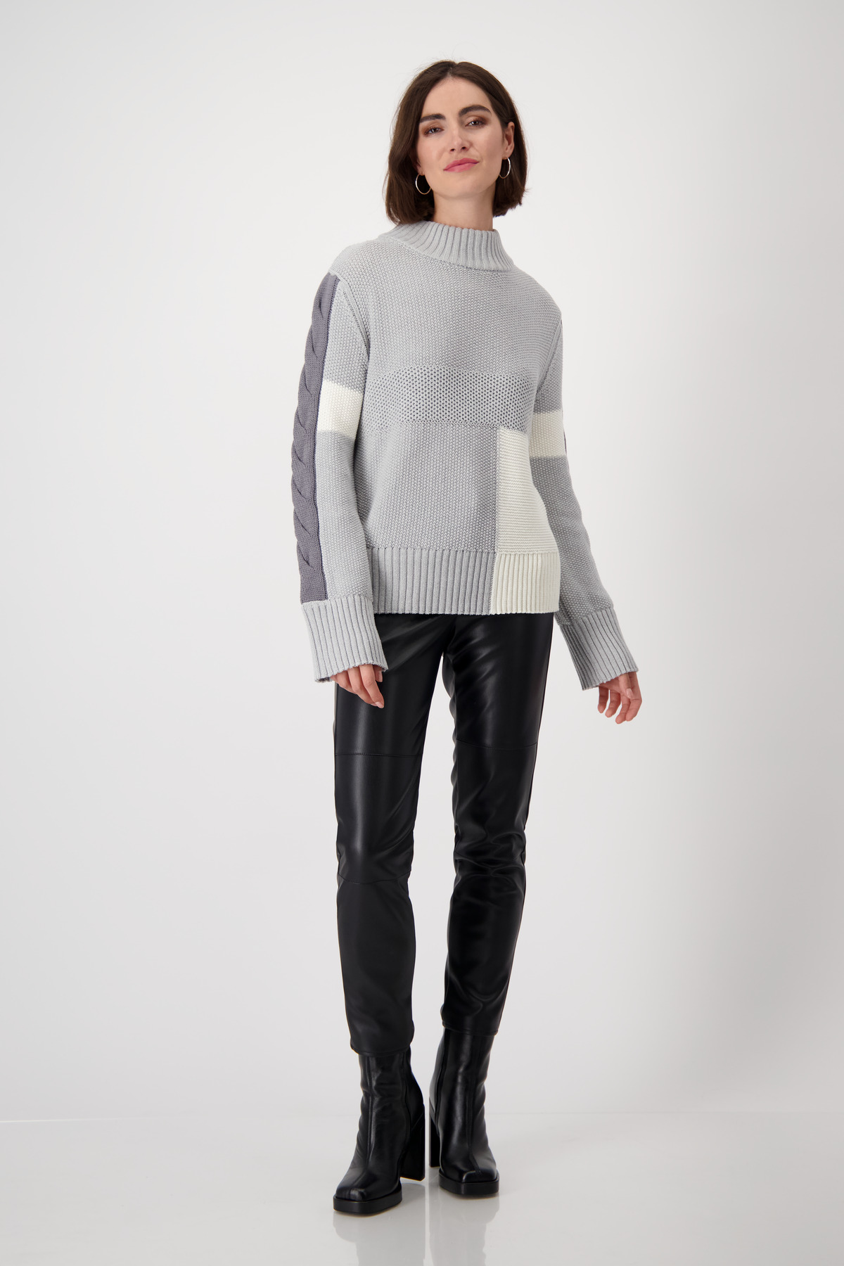 Der trendige Pullover mit Colorblocking-Design besticht durch seine Reiskorn-Struktur und das teilweise eingearbeitete glitzernde Lurexgarn.