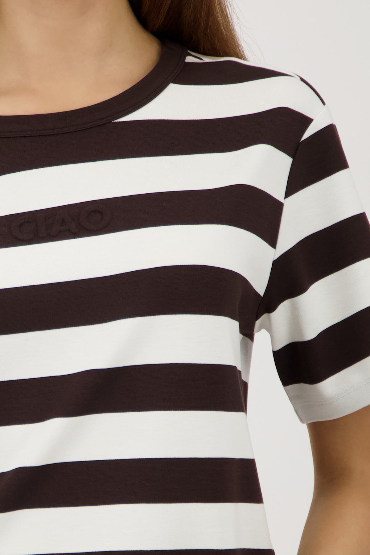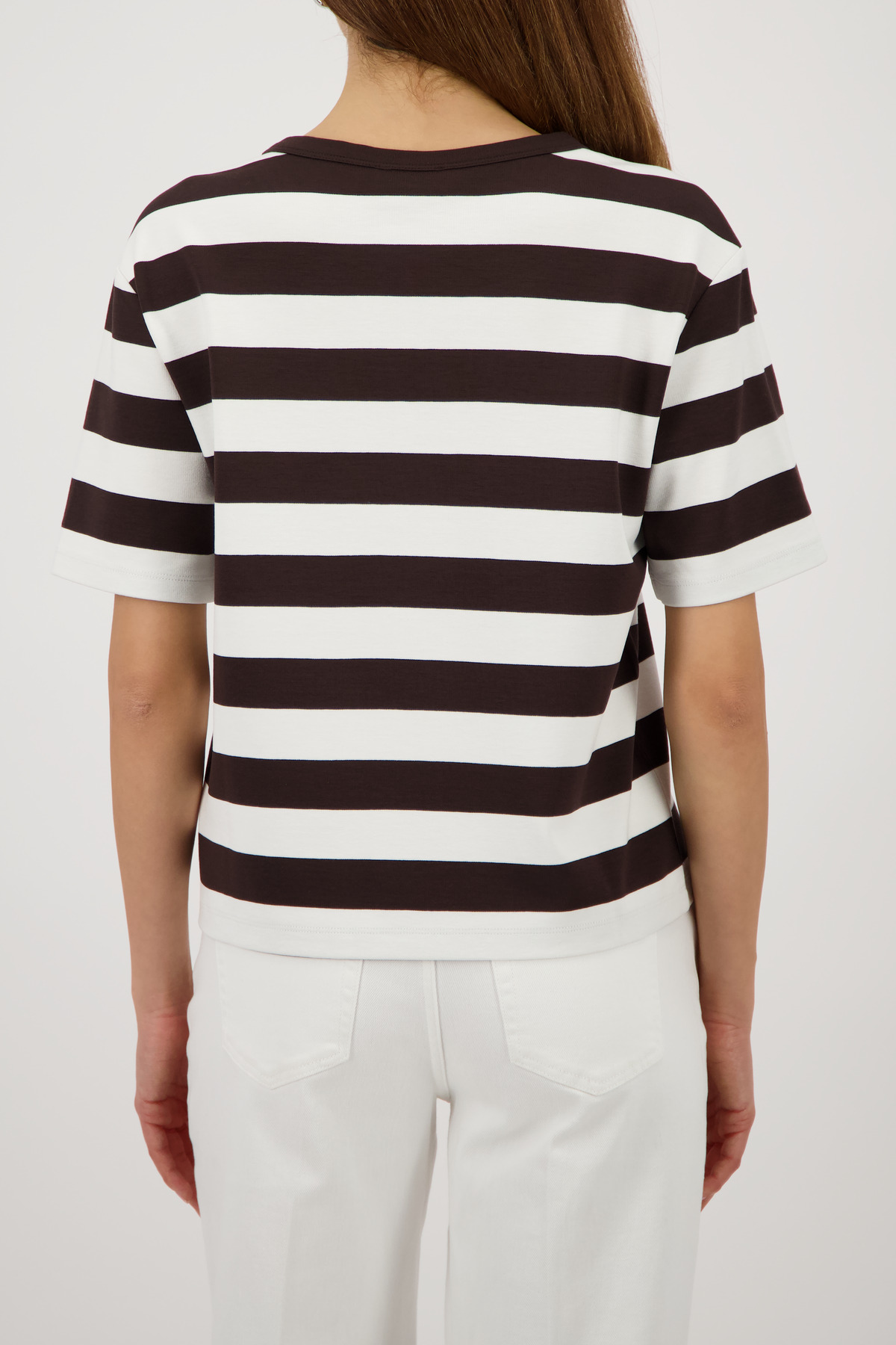 MONARI Damen Kurzarm-Sweatshirt mit Streifen braun-weiß