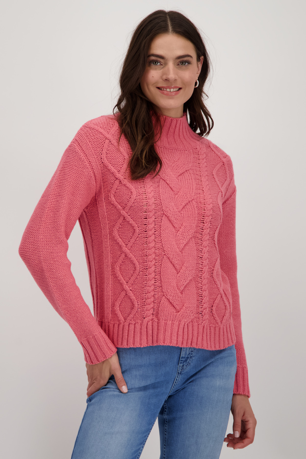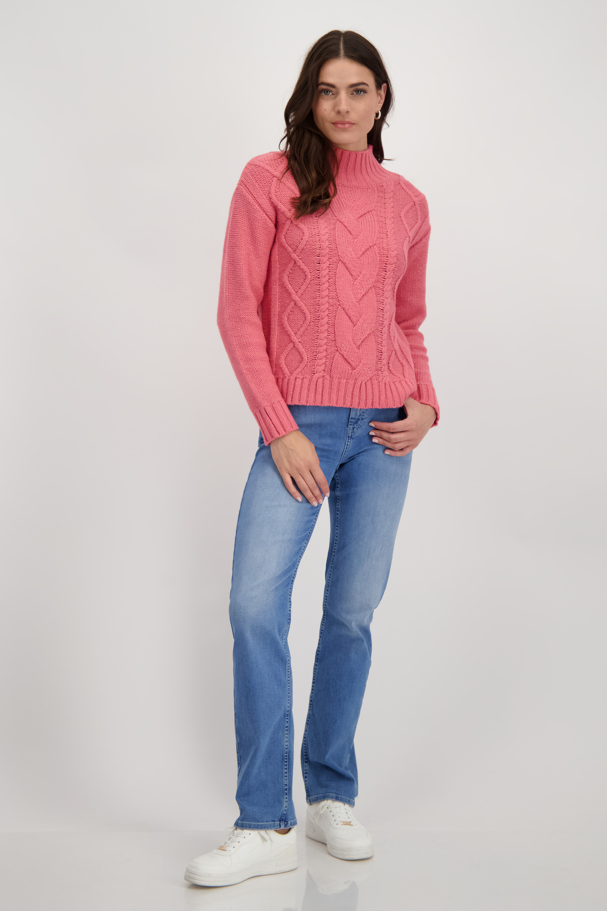 Dieser Strickpullover begeistert mit seinem Strukturmix und einem gerippten Stehkragen mit Schlitz.