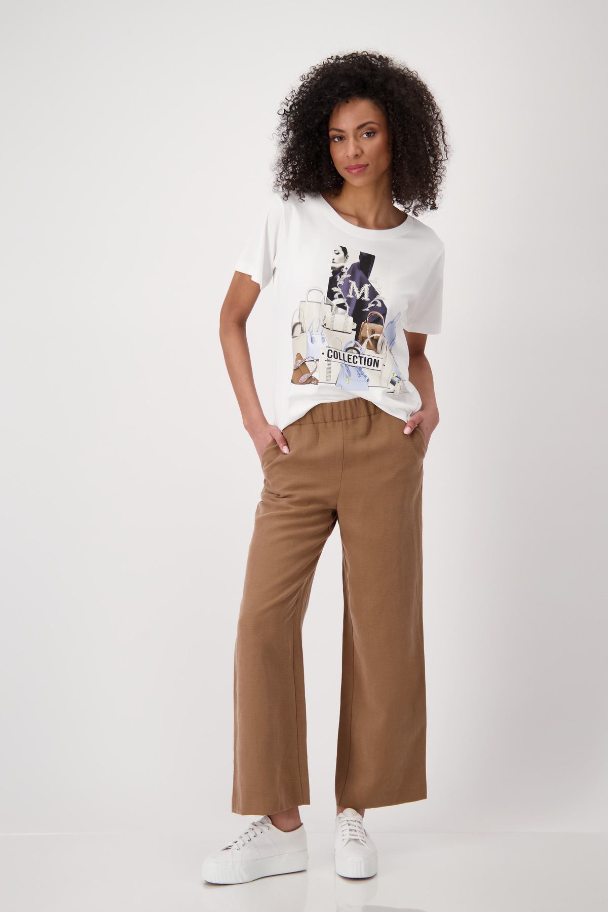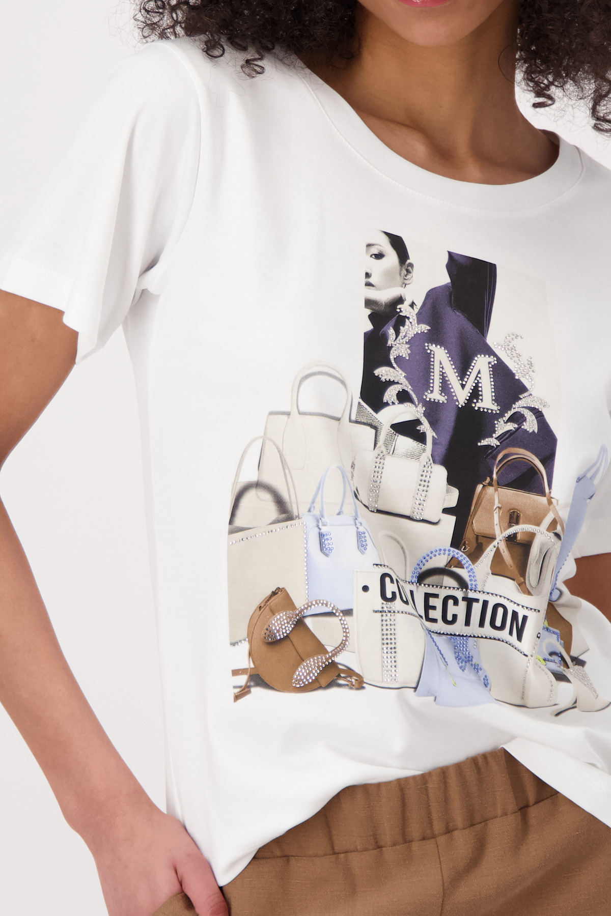 Dieses T-Shirt aus 100% Baumwolle überzeugt mit einem einzigartigen Taschenprint und funkelnden Strasssteinen. Farbe offwhite