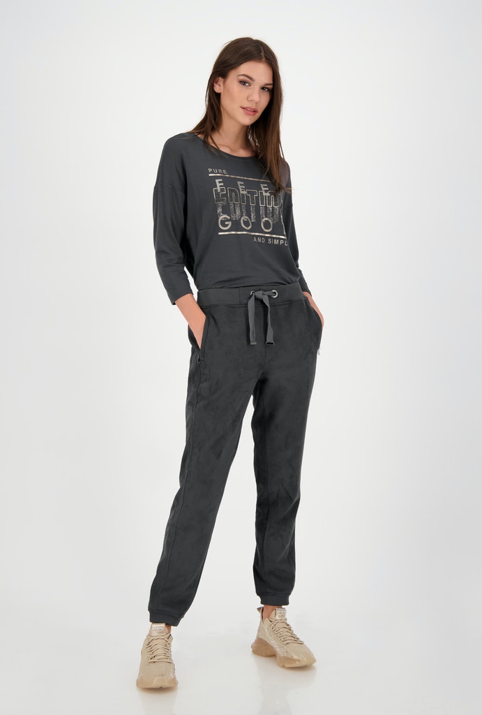 Wir lieben diese raffinierte, leichte Hose mit Stretchanteil von monari, die mit einer normalen Leibhöhe, einer coolen Joggerform und einem entspannten Sitz begeistern wird. Der Rippenbund mit Tunnelzug, Ringösen und Band zum Binden sowie die Beinenden mit elastischem Rippenbündchen vollenden das Design des Modells. Ob elegant oder sportiv, hierzu können Sie mühelos jedes Oberteil kombinieren, um Ihren persönlichen Casual-Look zu gestalten.