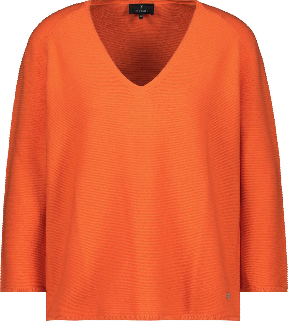 Ausgefallene Pullover Damen waren gestern. Erfreuen Sie sich an diesem schlichten Strickpullover von monari. Die Form für komfortable Trageeigenschaften: Regular Fit, V-Ausschnitt und 3/4 Arm. Der Damen Strickpullover ist im Linksstrick gearbeitet und erhält dadurch seine legere Optik. Die weiche Qualität aus 100% Baumwolle macht den Pullover ohne Kapuze zu einem unkomplizierten Begleiter. Man kann nie genug unifarbene Pullover im Kleiderschrank haben.