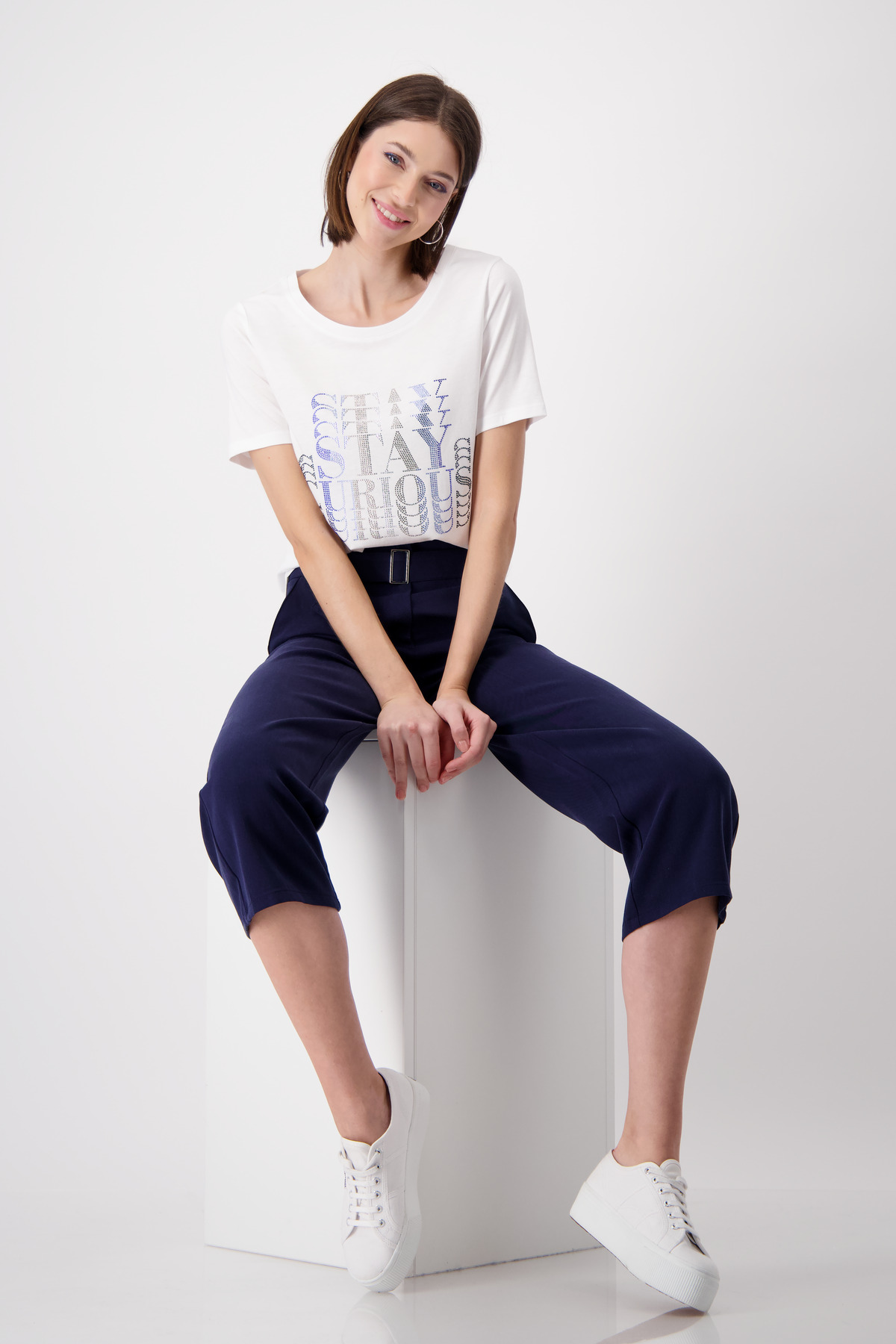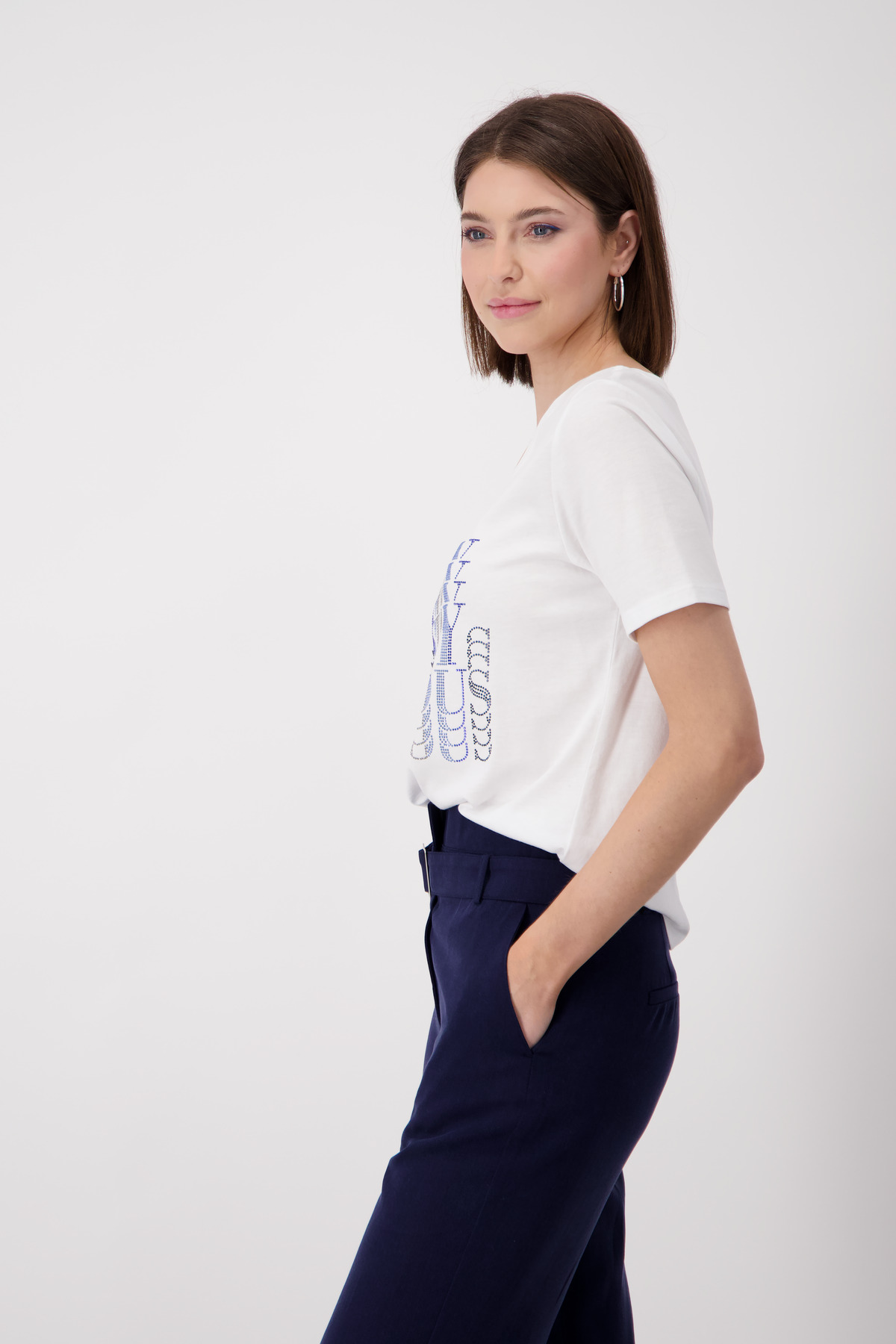 Stylisches T-Shirt mit einem Strass Schriftzug auf der Vorderseite.