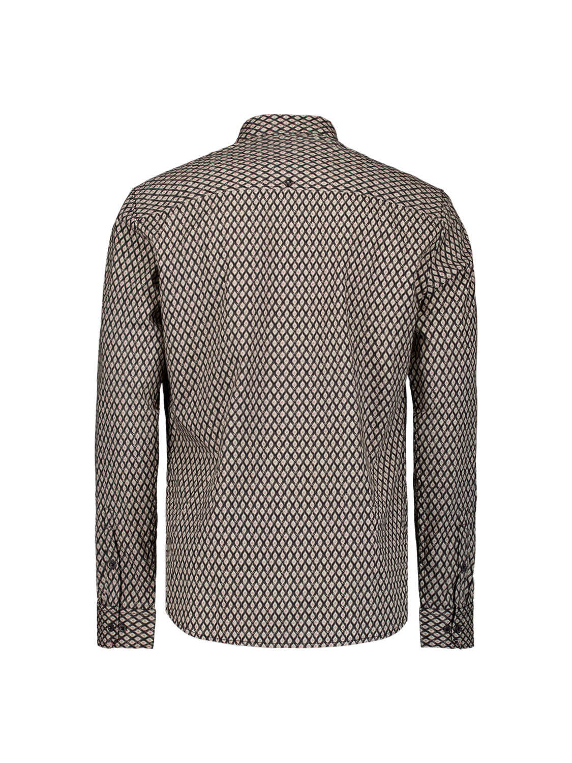 NO EXCESS Herren Stretchhemd in Grau-Beige mit Rautenmuster