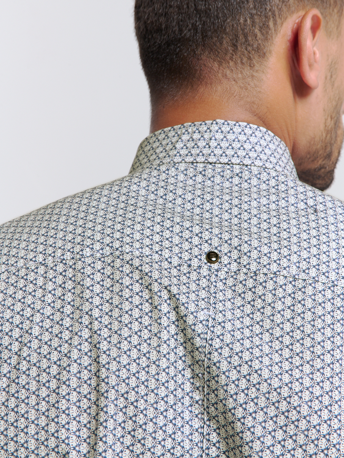 NO EXCESS Herren Stretchhemd mit Alloverprint in Weiß