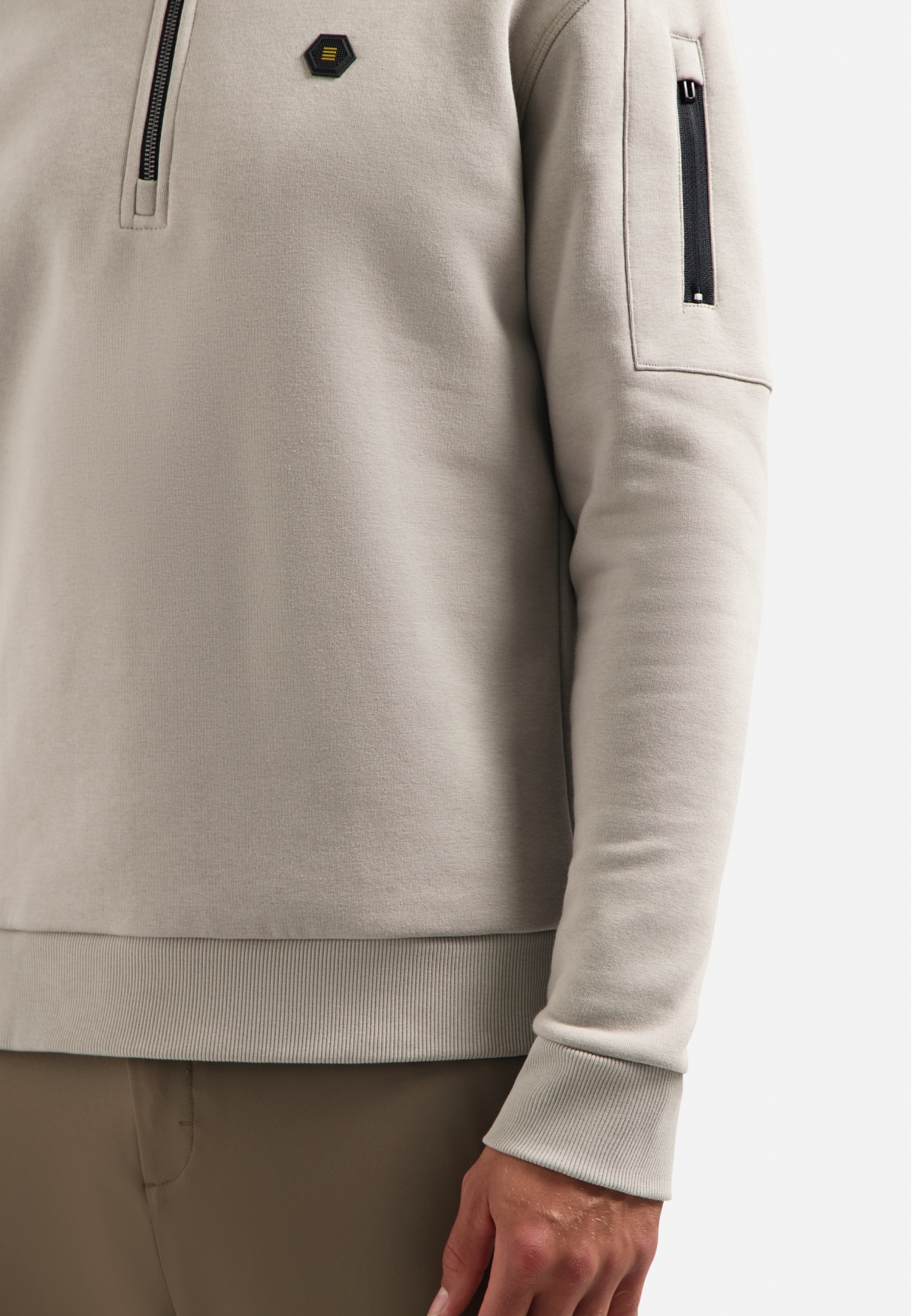 Das NO EXCESS Sweatshirt in Beige kombiniert lässigen Komfort mit einem modernen, sportiven Look. Der hoch geschlossene Troyerkragen mit Reißverschluss sorgt für Flexibilität und einen coolen Style, während das Taschendetail am linken Ärmel dem Design einen funktionalen Akzent verleiht.