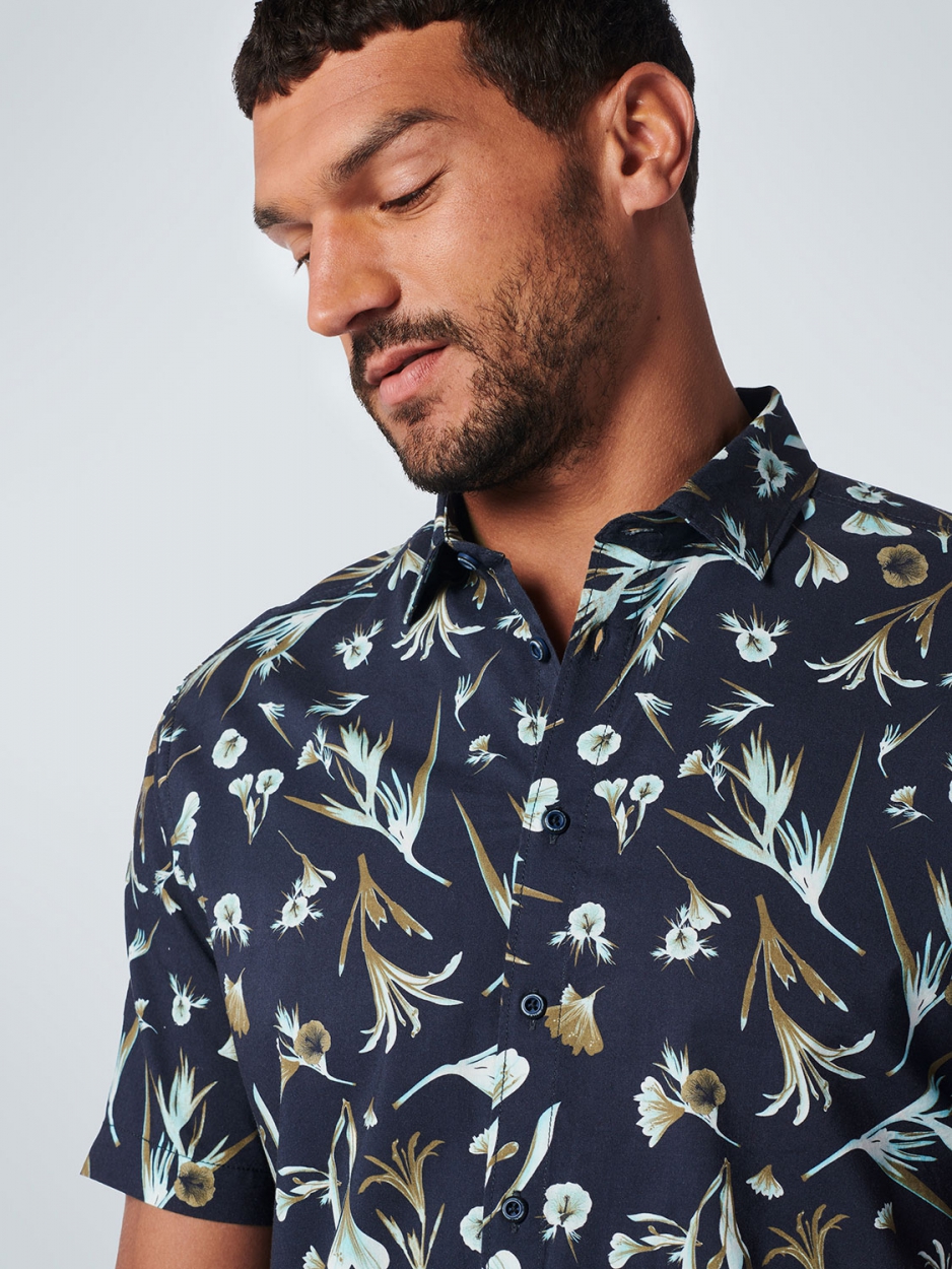 This short sleeve shirt by No Excess has an eyecatching allover print that is inspired by flora and fauna and its natural shapes. This style has a regular fit and is made of breathable cotton viscose yarns which creates an extra soft feel. The shirt is designed with great attention to detail, such as a kent collar and a metal trim at sleeve which ensure the No Excess identity.