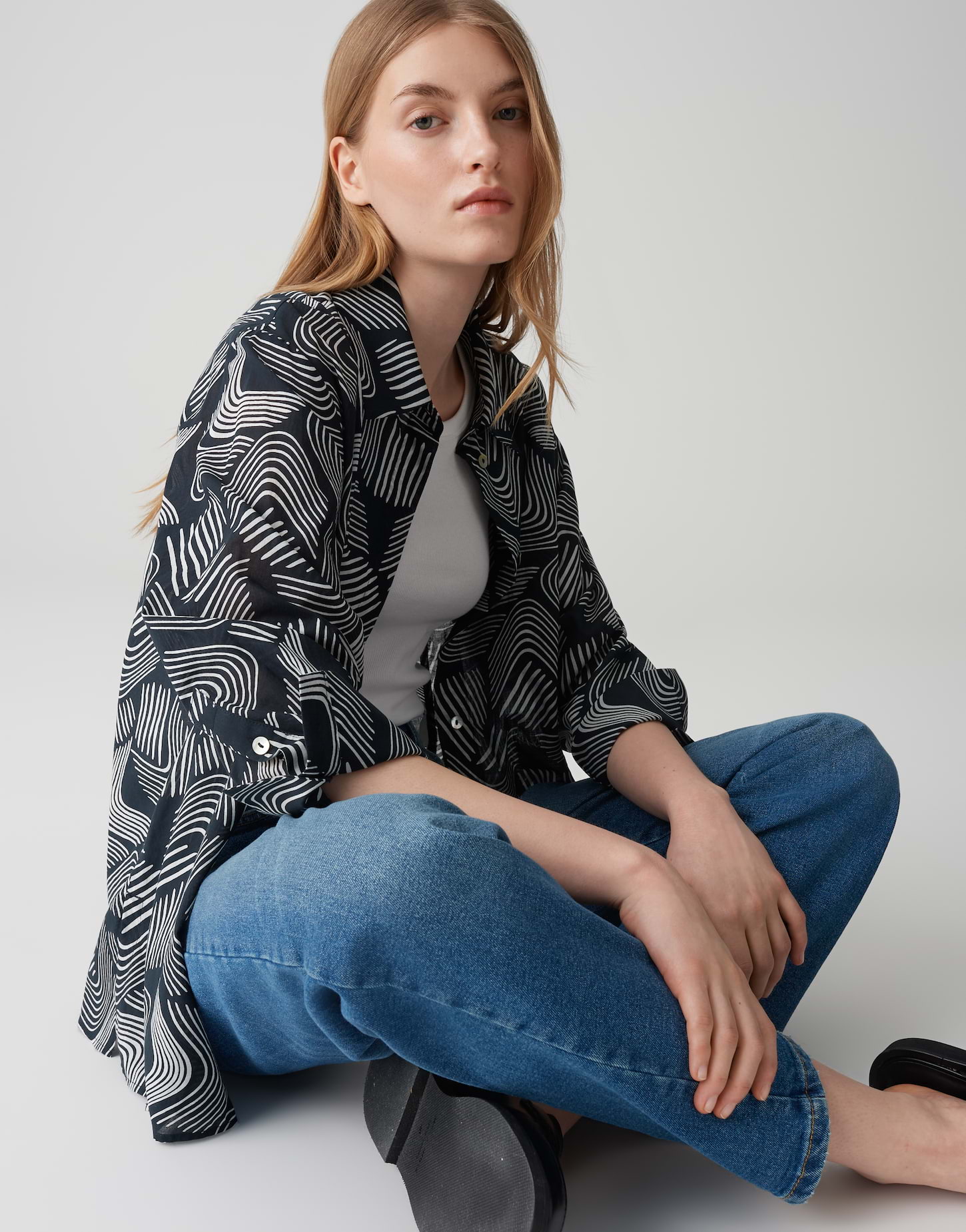 Leicht & stilvoll: OPUS Hemdbluse Fumina Move mit Print in coal blue. Aus reiner Baumwolle. Jetzt versandkostenfrei shoppen & Lieblingslook entdecken!