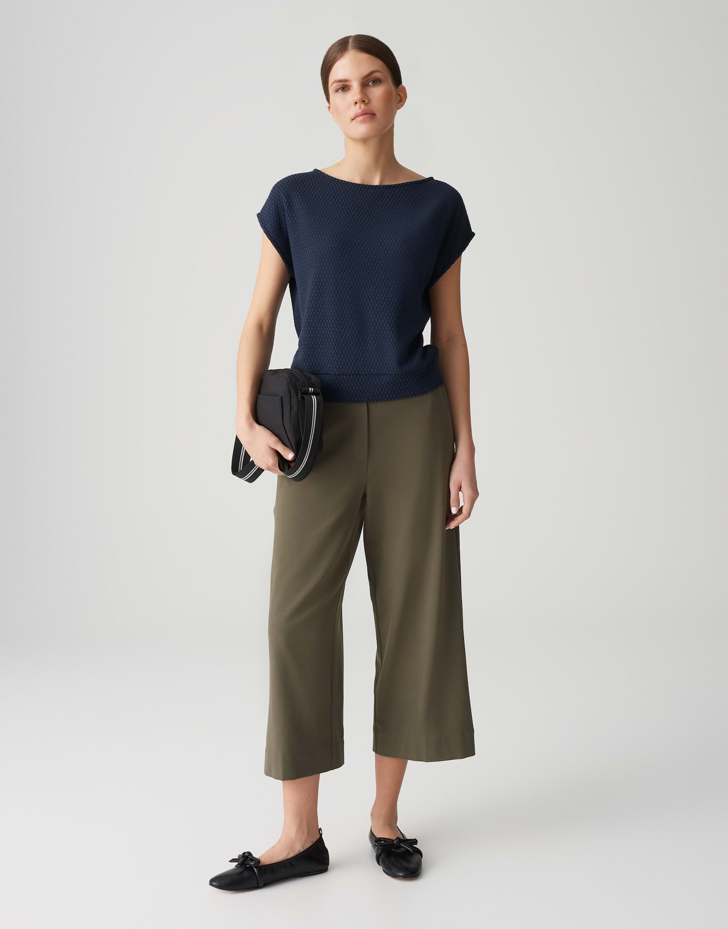 OPUS Damen Shirt Sumsala coal blue mit Struktur und U-Boot-Ausschnitt