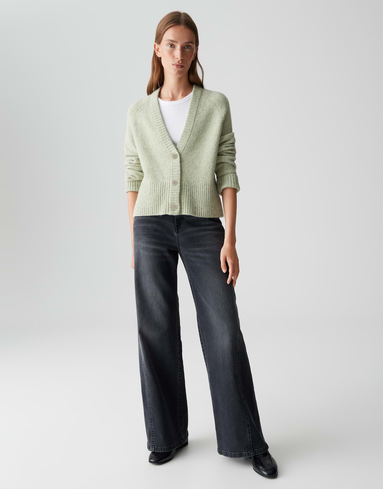 OPUS Strickjacke Dassi soft matcha grün, Cardigan aus Alpaka kaufen, OPUS Damen Strickjacke Modehaus Garrel