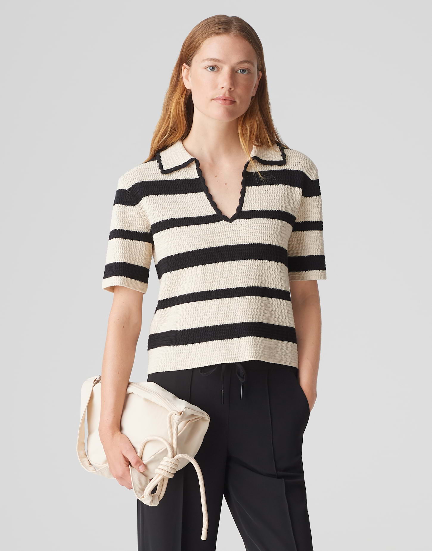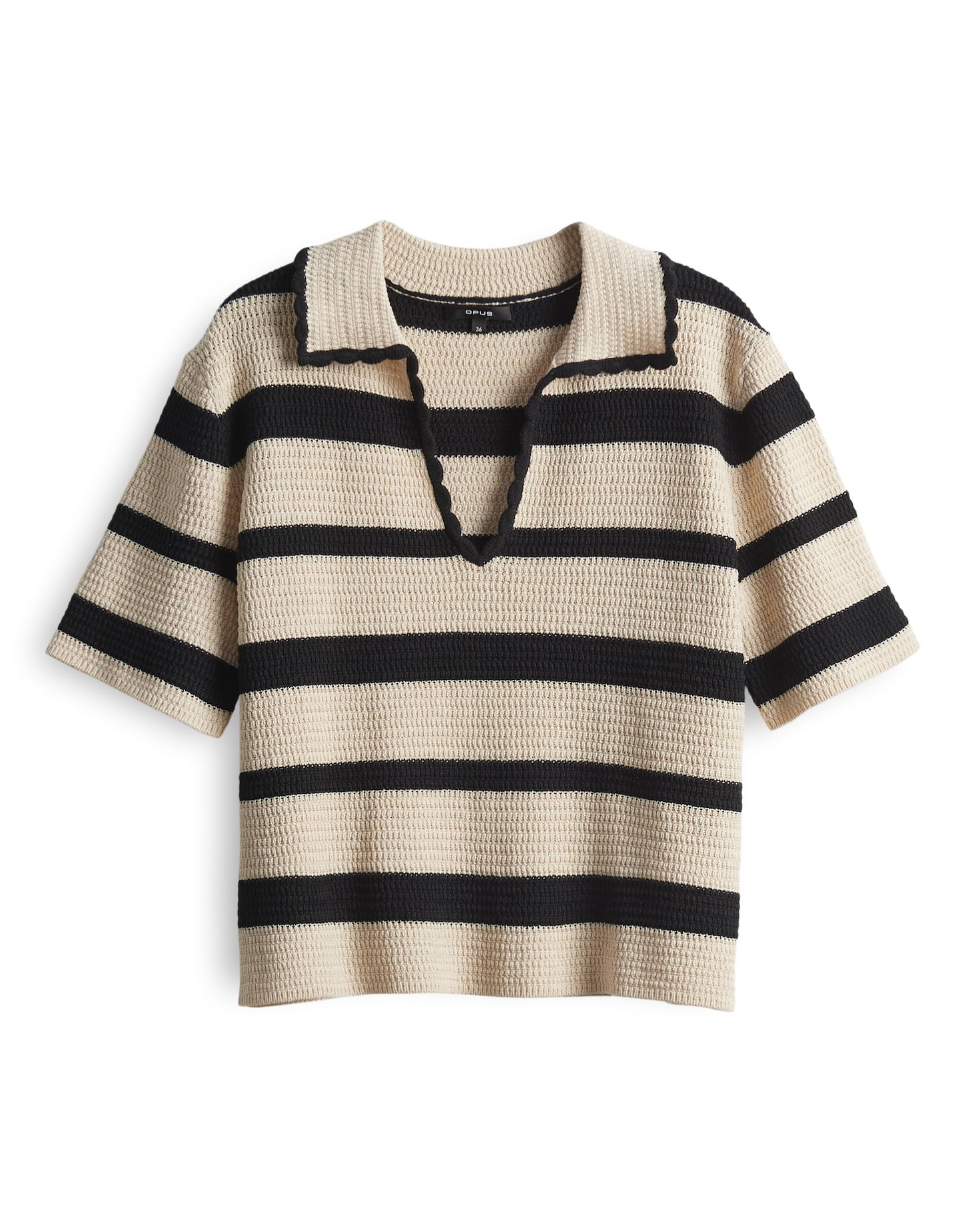 lockere Passform, gerader Schnitt, verkürzte Länge, Kurzarm, V-Ausschnitt, Polokragen