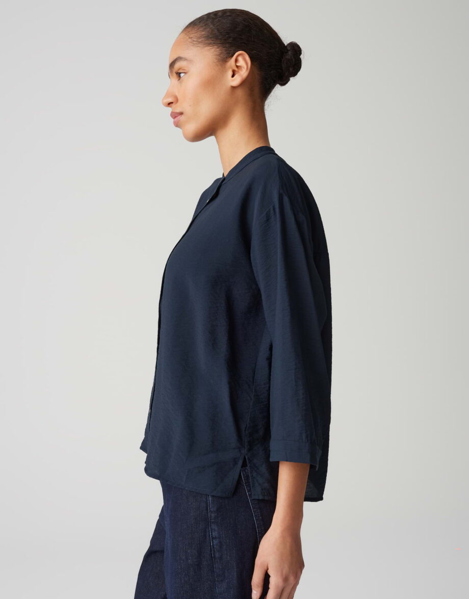 Die Bluse Fanari Loose von OPUS begeistert mit ihrer fließenden Qualität und dezenten Crashoptik – perfekt für einen femininen Look mit modischer Leichtigkeit. Der weite, gerade Schnitt mit 3/4-Arm, überschnittener Schulter und Rundhalsausschnitt sorgt für eine entspannte Passform. Farblich abgestimmte Steppnähte an Knopfleiste und Ärmelabschluss setzen stilvolle Akzente, während edle Perlmuttknöpfe und Seitenschlitze das Design abrunden. Besonders schön fällt der leichte Stoff mit feiner Transparenz im Farbton natural glaze beige, während coal blue Tiefe und Eleganz verleiht.