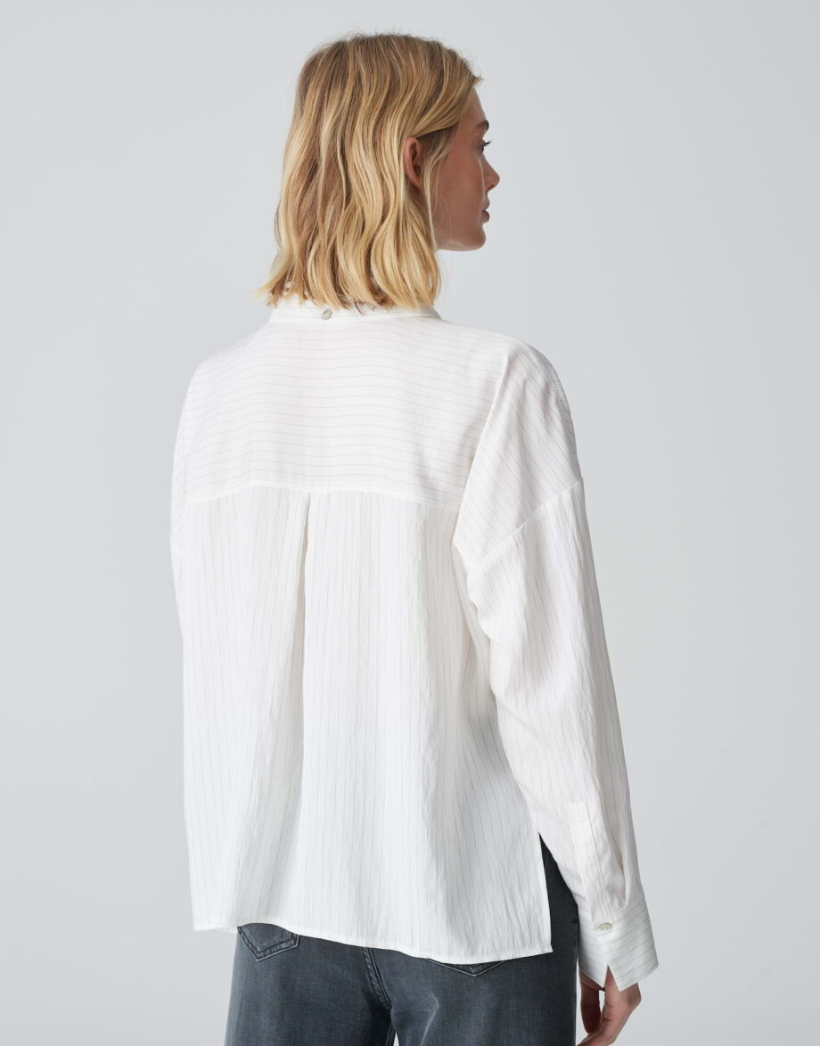 Diese klassische Nadelstreifenbluse wird durch den lässigen Boxy Fit zu einem modischen It-Piece, perfekt für das Büro oder die Freizeit.