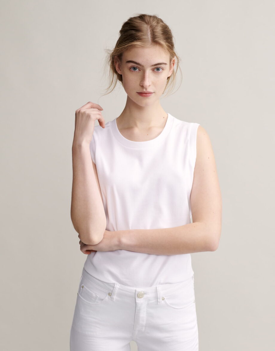lockere Passform, Nullarm, Rundhalsausschnitt, Rückenlänge ca. 58 cm bei Größe 36, Model Größe 181 cm – trägt Größe 36, BCI Cotton, weicher Griff, elastischer Stoff, Jersey, breite Träger