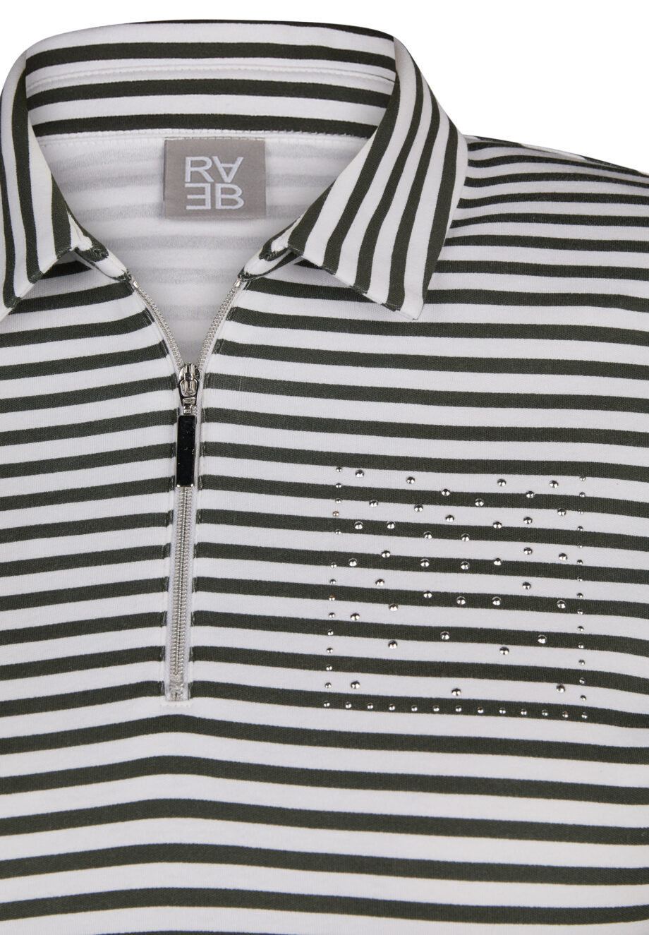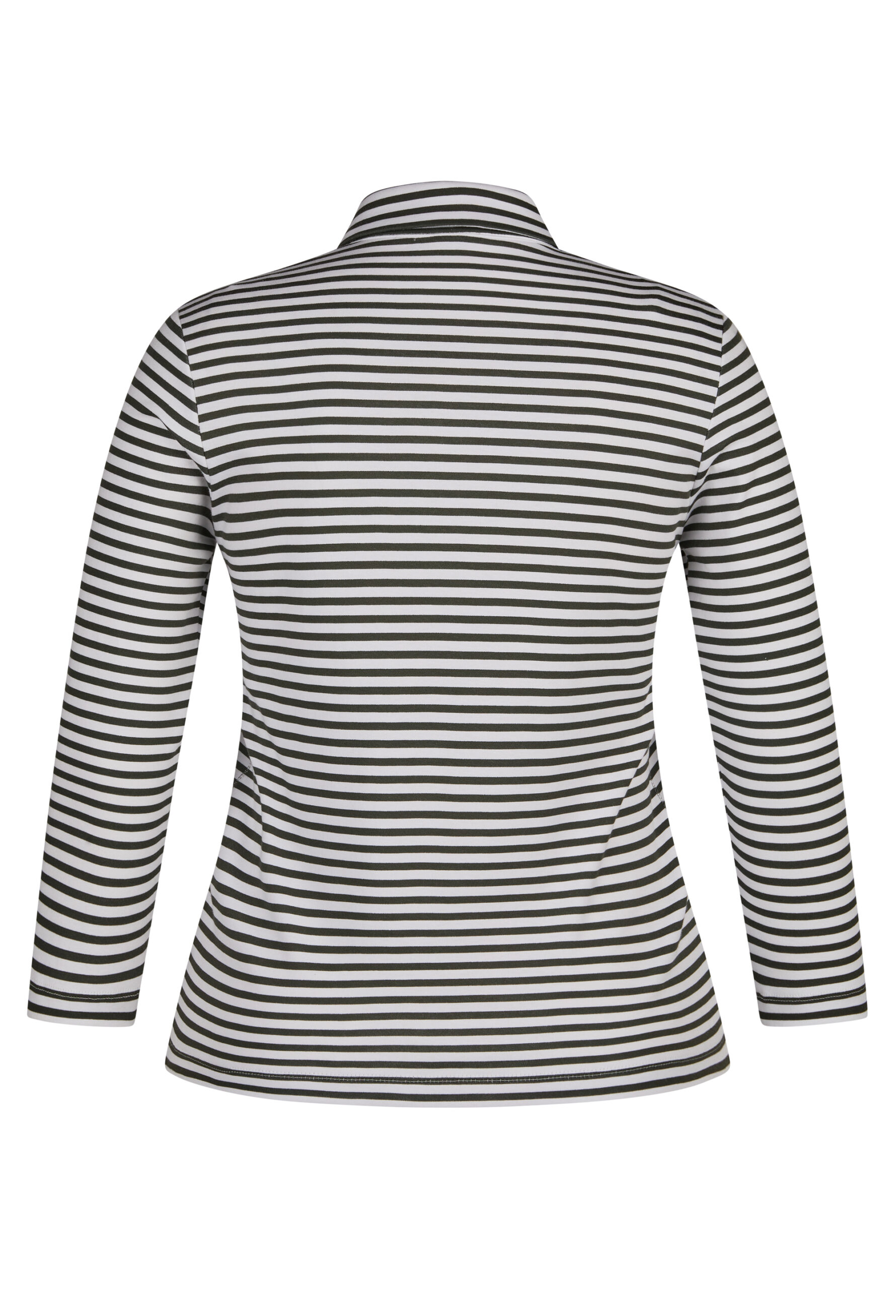RABE Damen Polo-Shirt mit Zipper in khaki-grünem Streifendesign