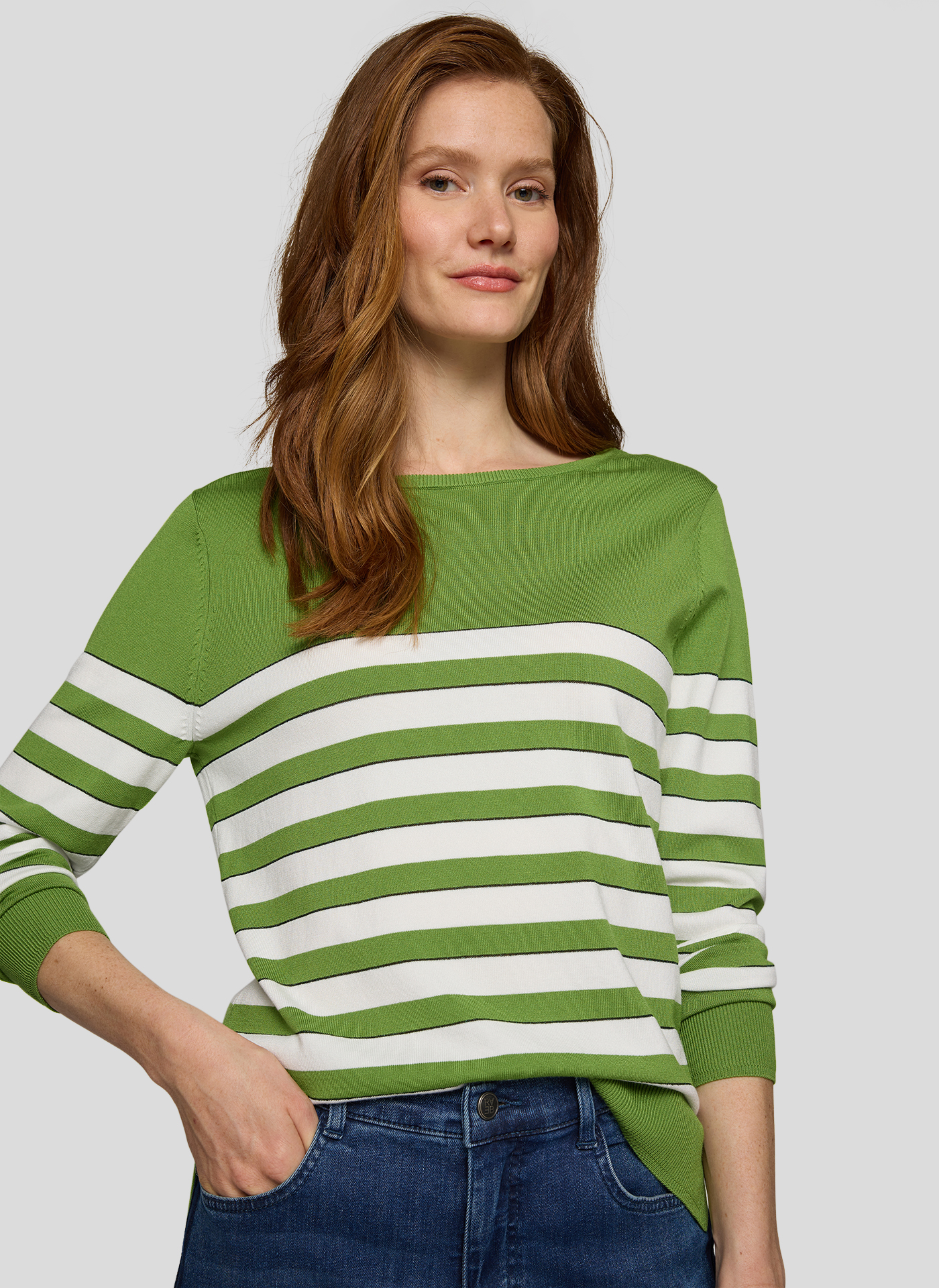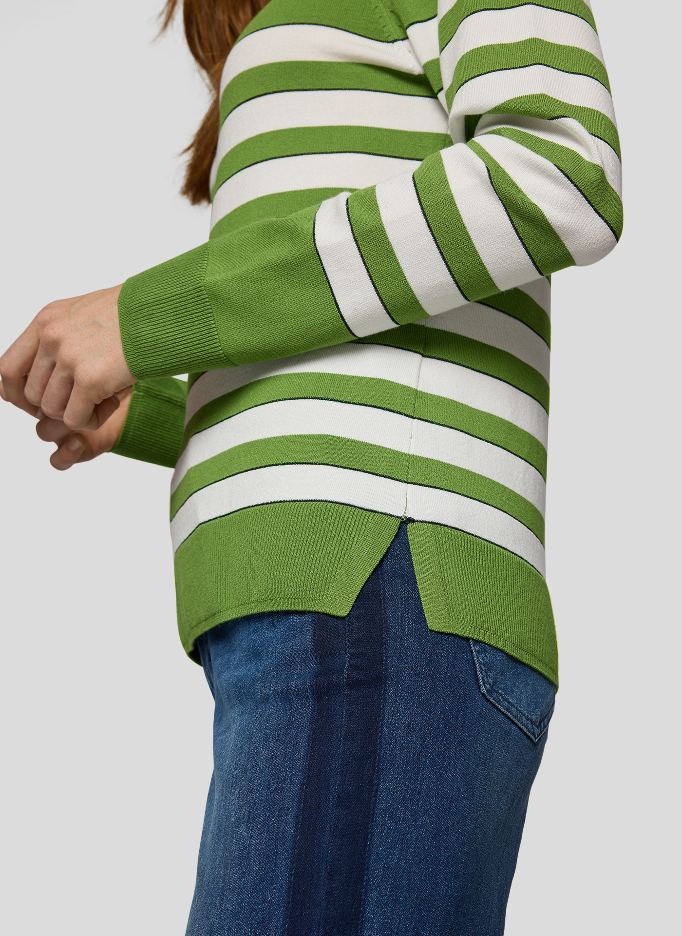 Mit diesem gestreiften Damenpullover von RABE bringst du Farbe und Frische in deine Garderobe. Das Modell überzeugt durch seinen klassischen Rundhalsausschnitt, lange Ärmel und dezente Seitenschlitze, die für mehr Bewegungsfreiheit sorgen. Die weiche Viskose-Mischung trägt sich angenehm auf der Haut und verleiht dem Pullover einen sanften Fall. Ideal kombinierbar zu Jeans, Stoffhosen oder Röcken – für stilvolle Casual-Looks mit Wohlfühlfaktor.