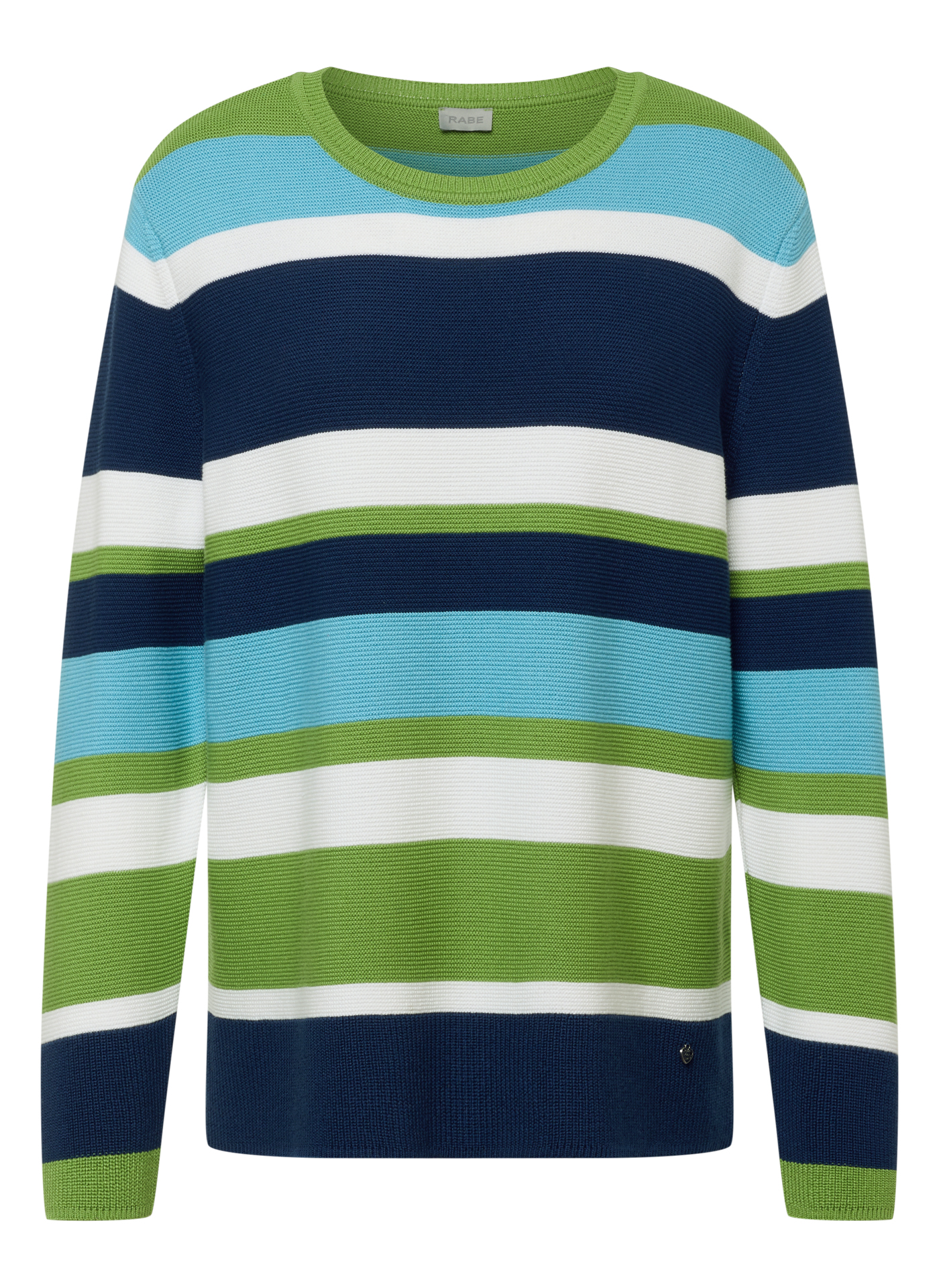 Der Pullover zeigt sich im ausdrucksstarken Streifendesign mit angenehmer Strukturqualität. Die harmonisch abgestimmten Farben in Kombination mit der trageangenehmen Materialmischung machen das Modell zu einem vielseitigen Begleiter in der Übergangszeit. Ein kleines Markenemblem am Saum rundet das Design ab. Strukturstrick mit Streifenmuster. Klassischer Rundhalsausschnitt. Langarm mit formstabilem Bündchen. Kleines Metall-Emblem am Saum. Baumwollmischung mit weichem Griff.