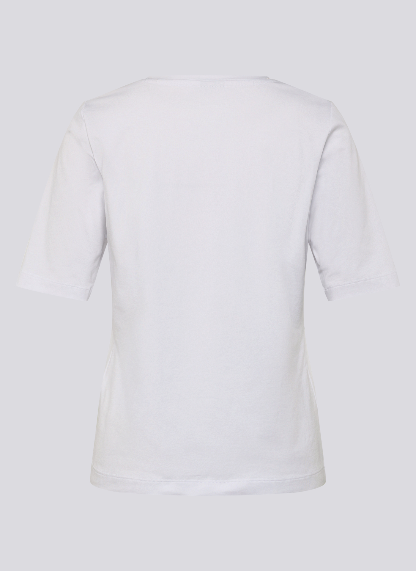 Gefertigt aus 95 % Baumwolle und 5 % Elasthan überzeugt dieses T-Shirt mit einem weichen Griff und angenehmem Stretchkomfort. Der klassische Rundhalsausschnitt sorgt für eine zeitlose Optik. Das florale Frontmotiv wird durch feine Strassdetails ergänzt und erhält dadurch eine dezente, funkelnde Note _ ideal für feminine Alltags-Styles mit besonderem Akzent. Baumwollmix mit Stretch. Weiches, angenehmes Tragegefühl. Klassischer Rundhalsausschnitt. Florales Motiv mit Strass. Pflegeleicht und formstabil.