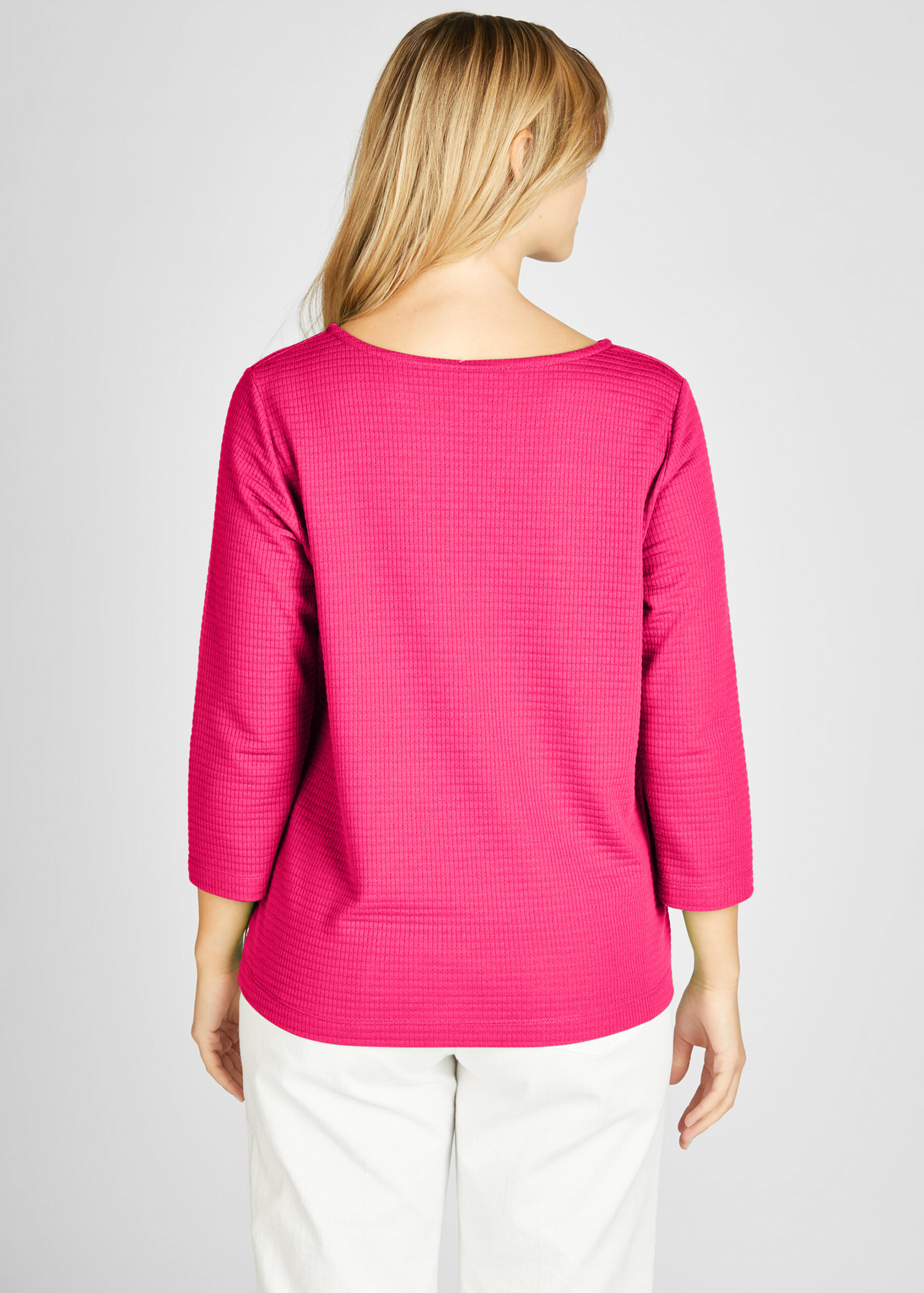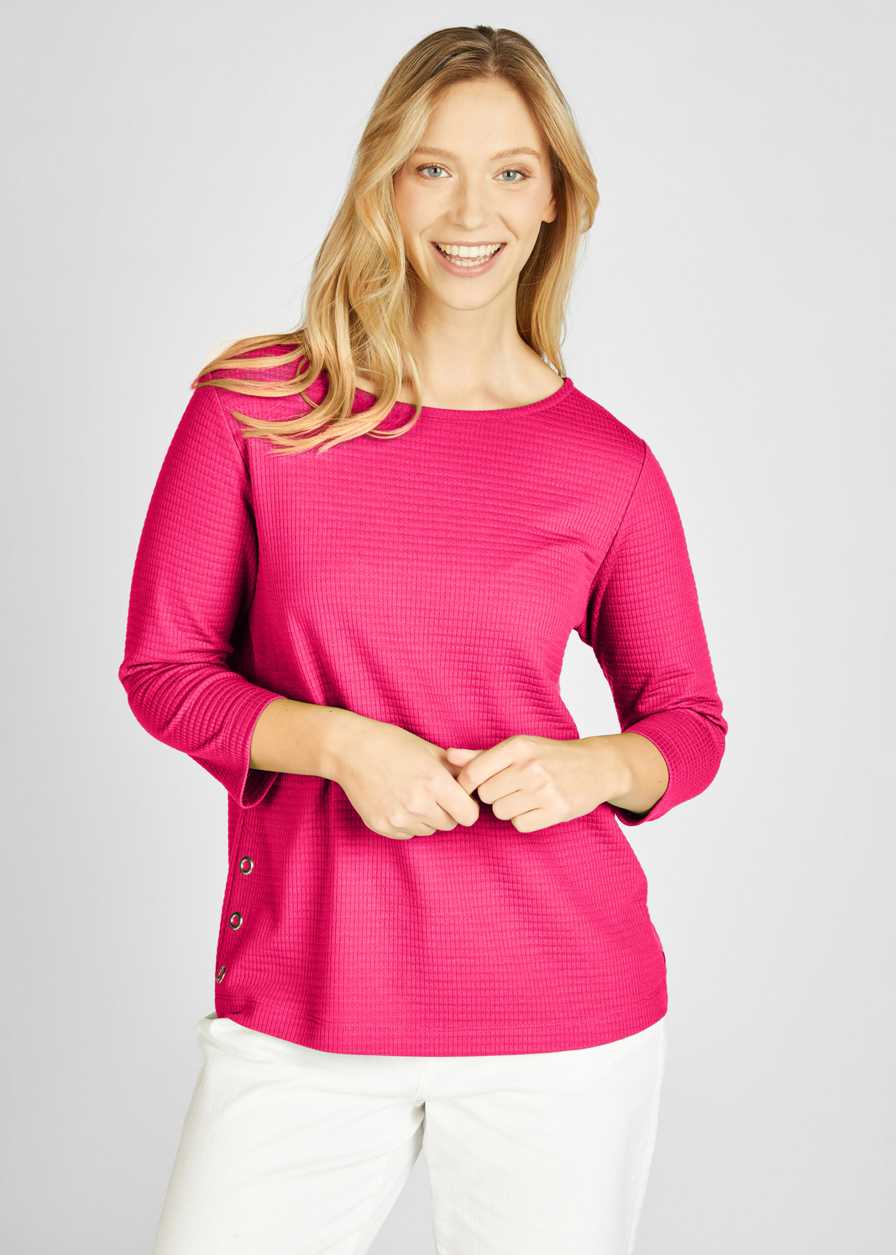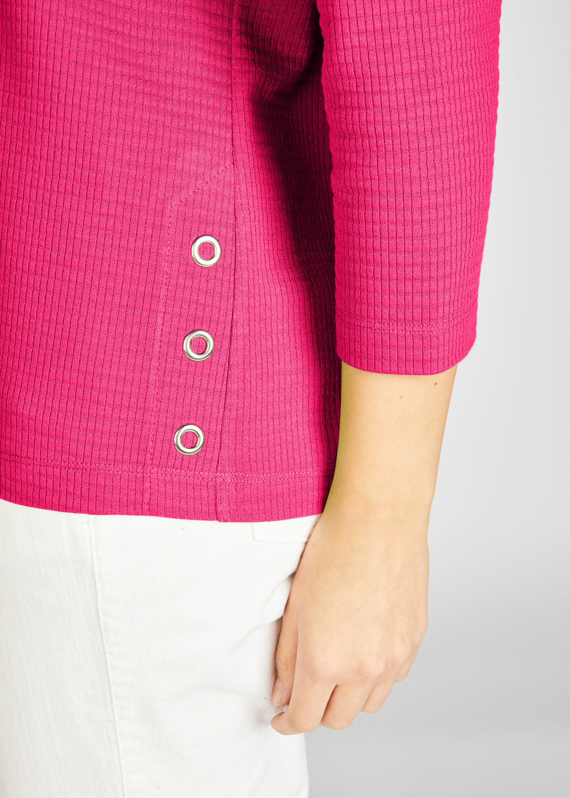 Dieser Rundhals-Pullover in feinem Gitter-Design setzt Highlights mit Zier-Nieten an den Seiten, welche durch die Abnähung perfekt zur Geltung kommen. Der gerade Schnitt rundet das Design ab. Komplett wird der Look mit einer schlichten Jeans oder Jeggings.