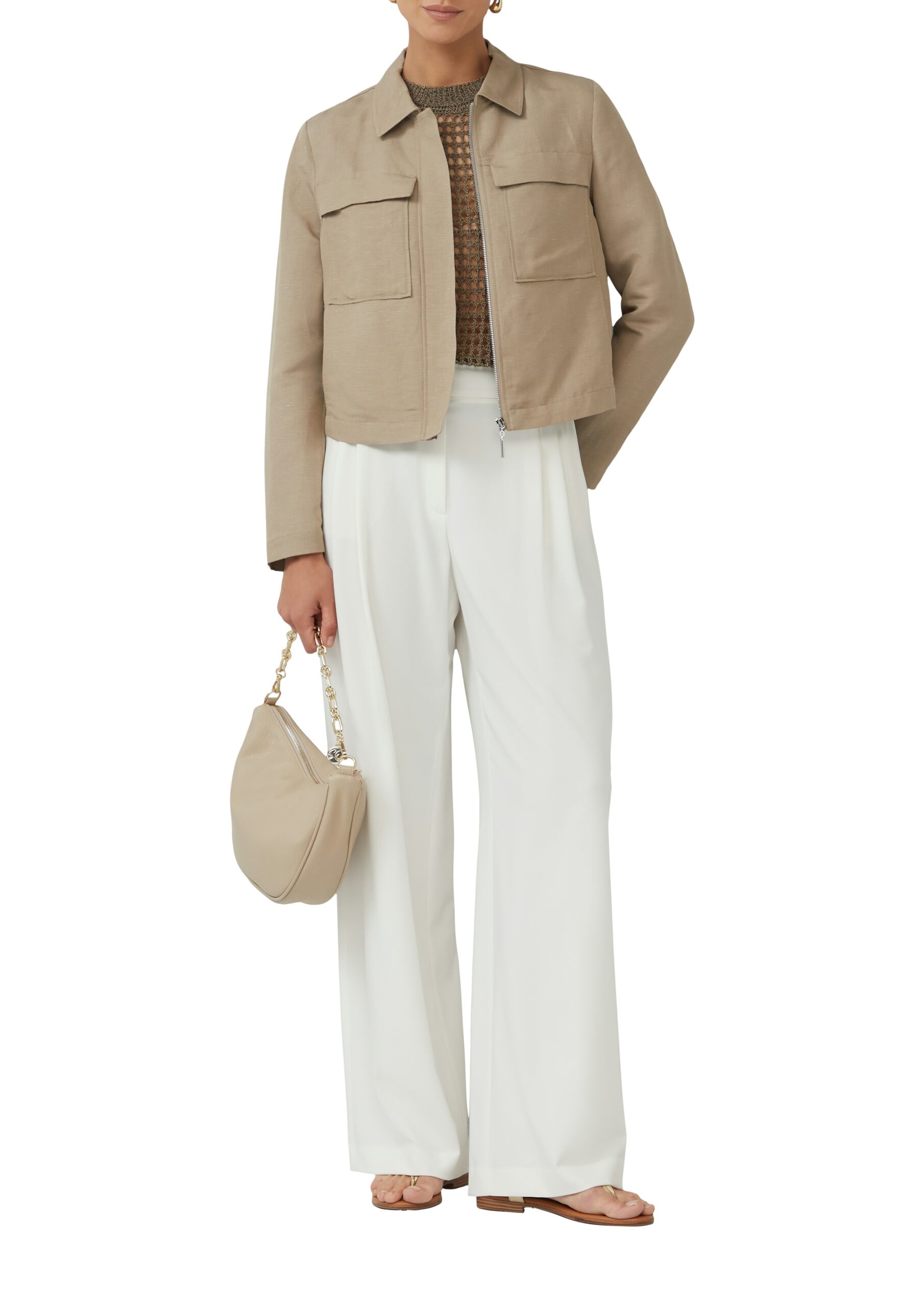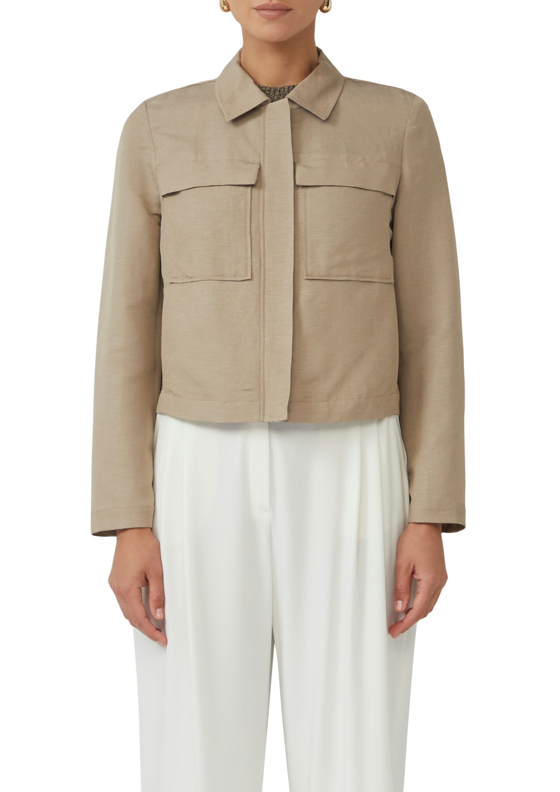 S. OLIVER BLACK LABEL Damen Jacke – Leinenmix, Regular Fit, aufgesetzte Taschen, Beige