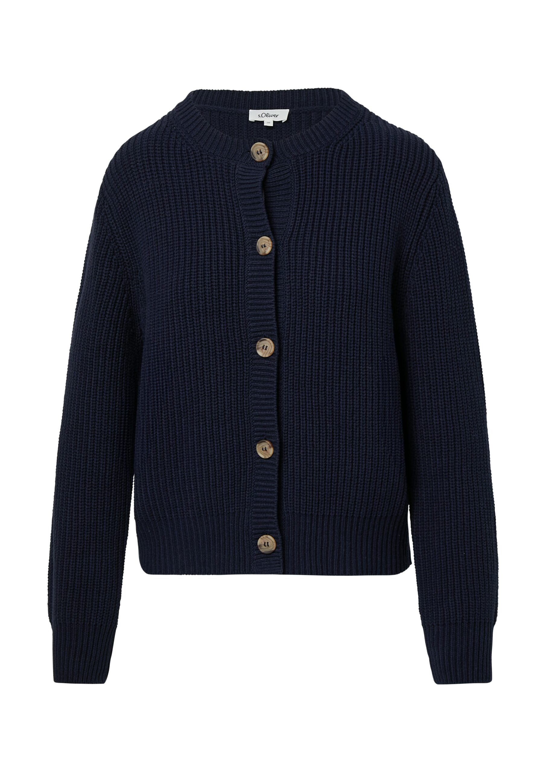 S.OLIVER Damen Cardigan dunkelblau, Strickjacke Damen Baumwollmix, Cardigan mit Knopfleiste, bequeme Damen Strickjacke, s.Oliver Strickjacke Regular Fit
