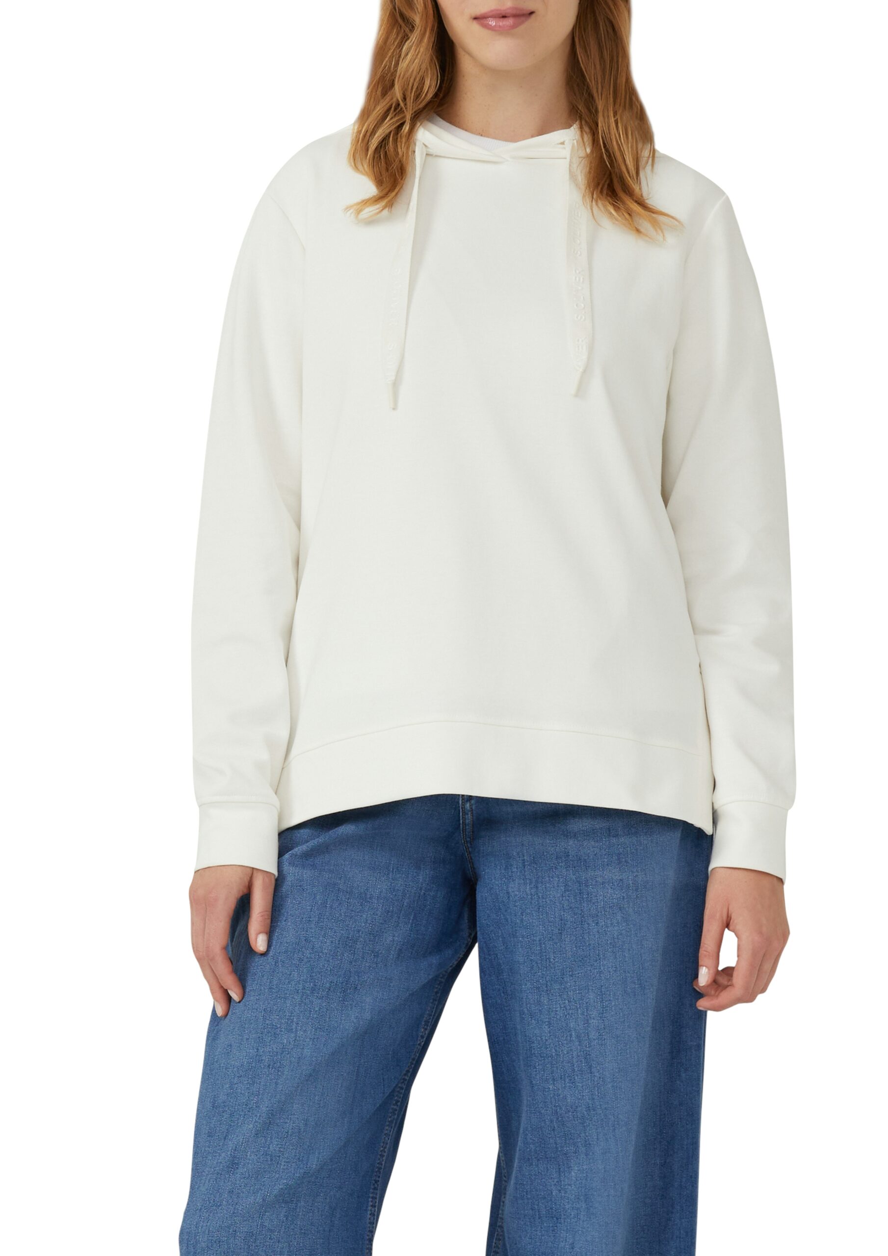 s.Oliver Kapuzensweatshirt Damen • Sweatshirt mit Schriftprint • Hoodie s.Oliver • Sweatshirt rot blau weiß • Damen Sweatshirt relaxed fit • Modehaus Garrel • s.Oliver online shoppen