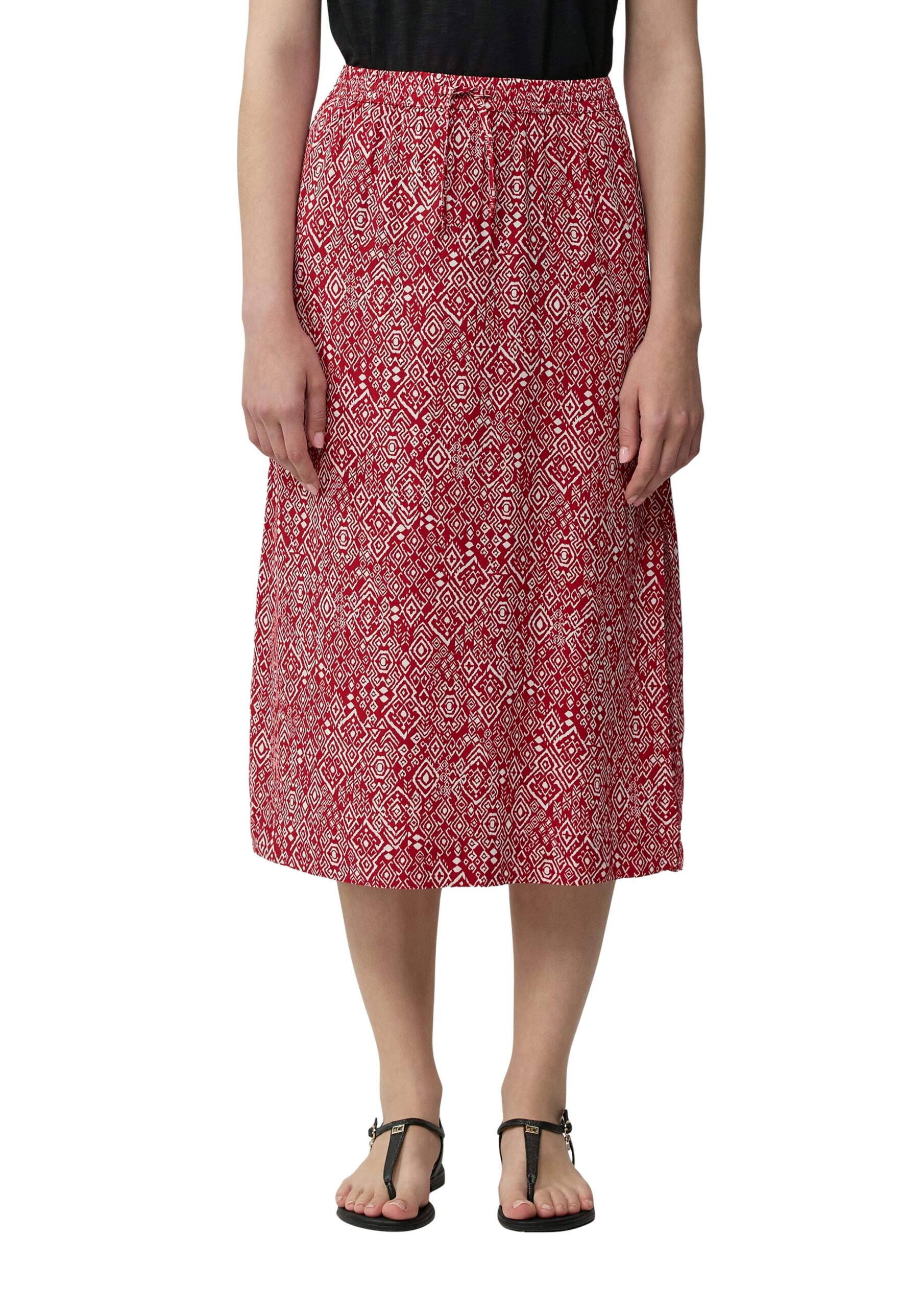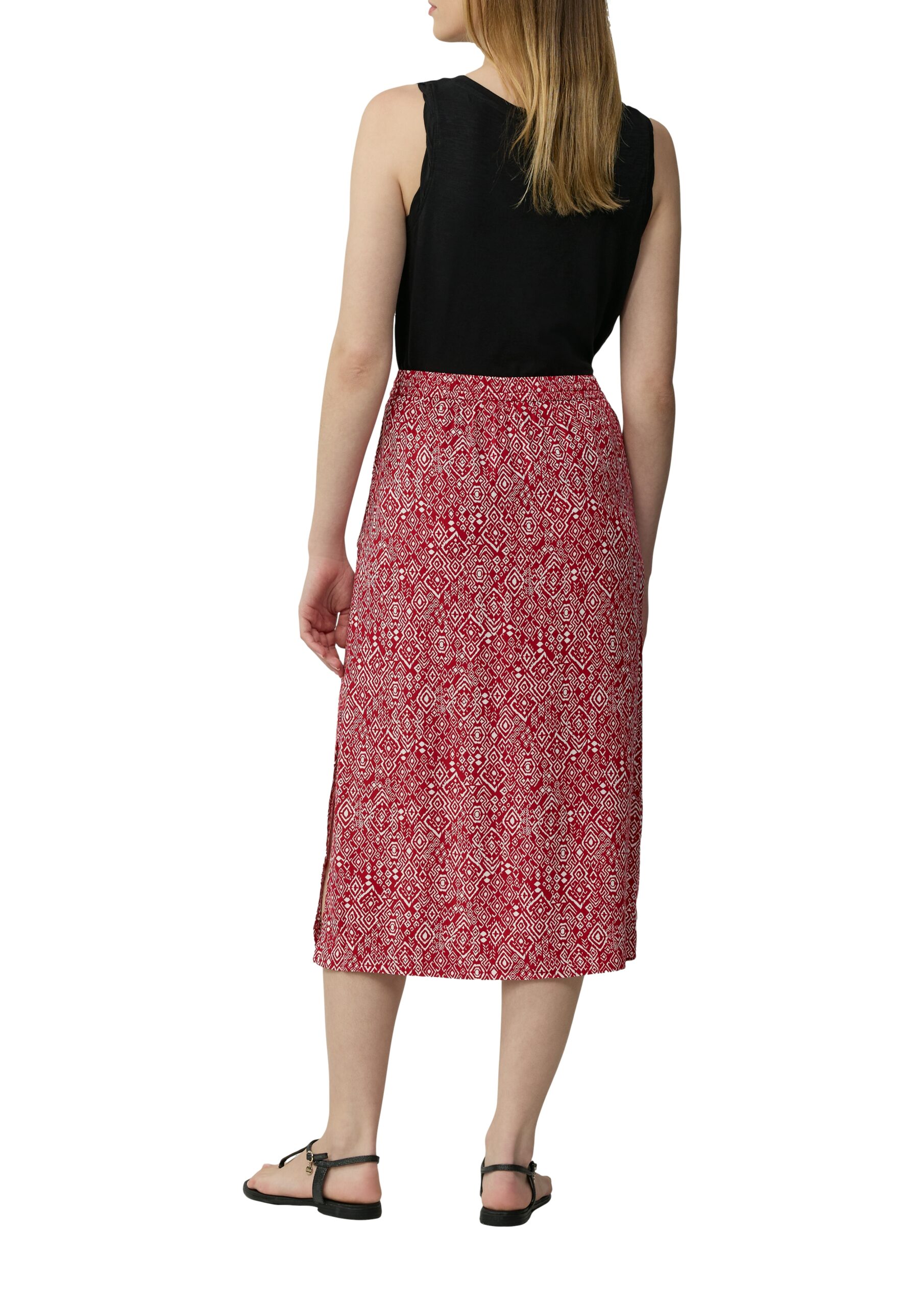 S.OLIVER Damen Rock – gemusterter Midirock mit Elastikbund & Tunnelzug, roter Alloverprint