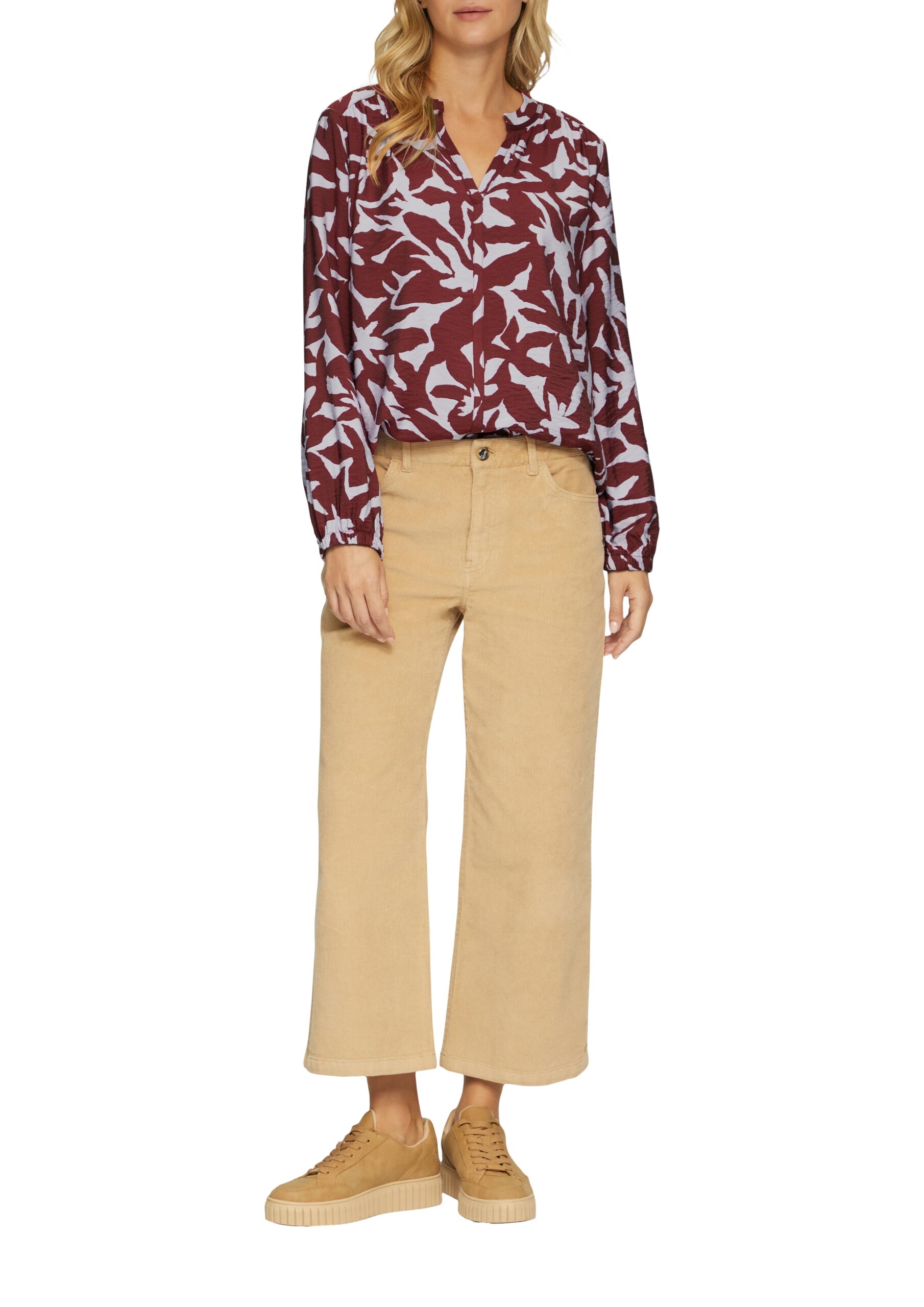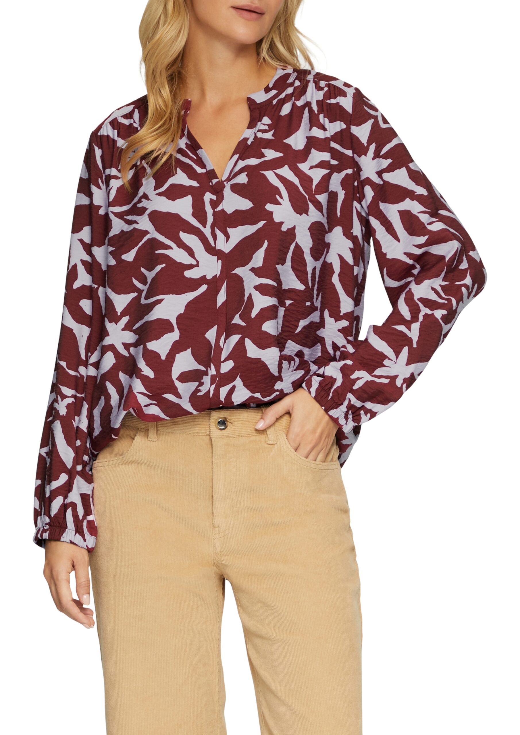 S. OLIVER Gemusterte Damen-Bluse mit V-Ausschnitt WINTERSALE