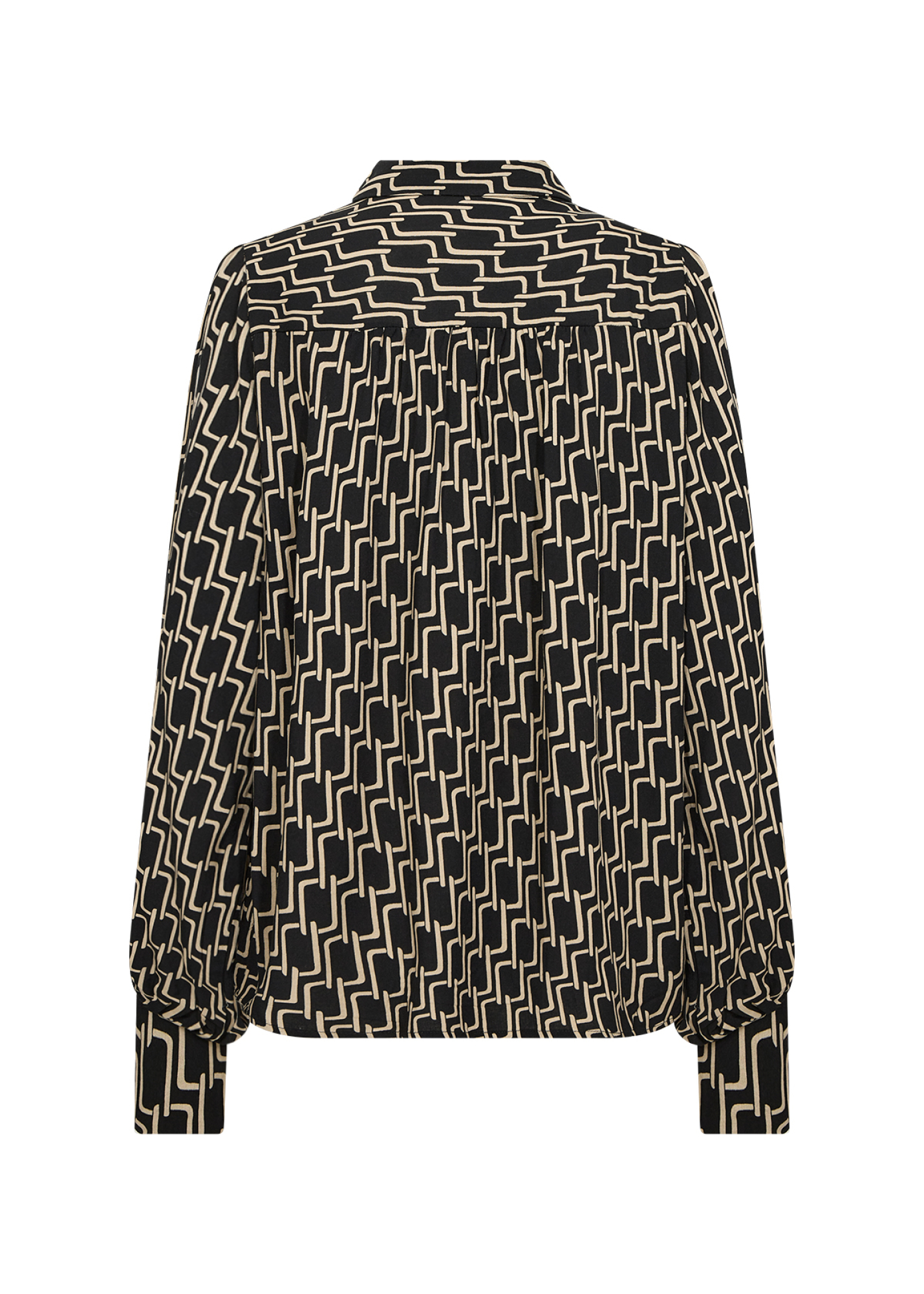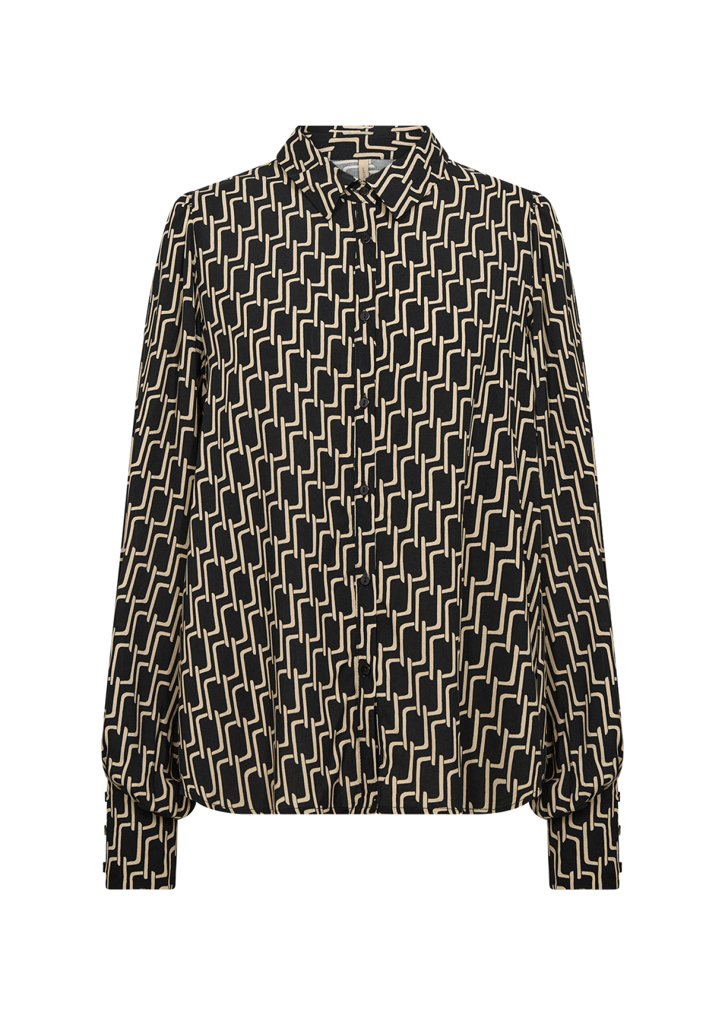 SOYACONCEPT Hemdbluse VARLA, nachhaltige Damenbluse schwarz beige, geometrischer Print Bluse, Modehaus Garrel Damenblusen