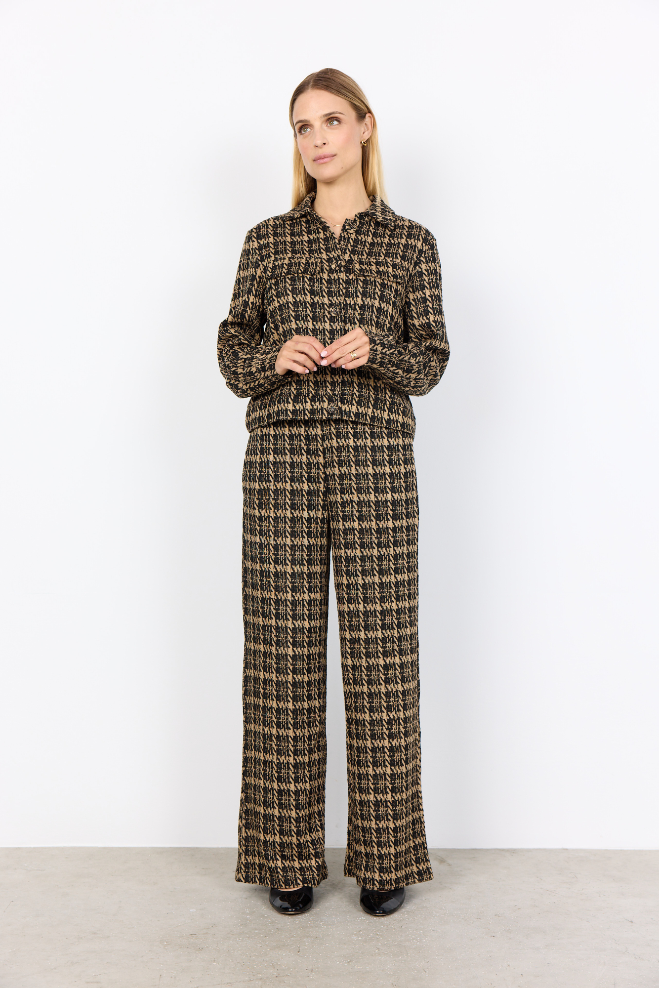 SOYACONCEPT Damen Indoor-Jacke VIBE mit Hahnentritt-Muster in Schwarz-Beige