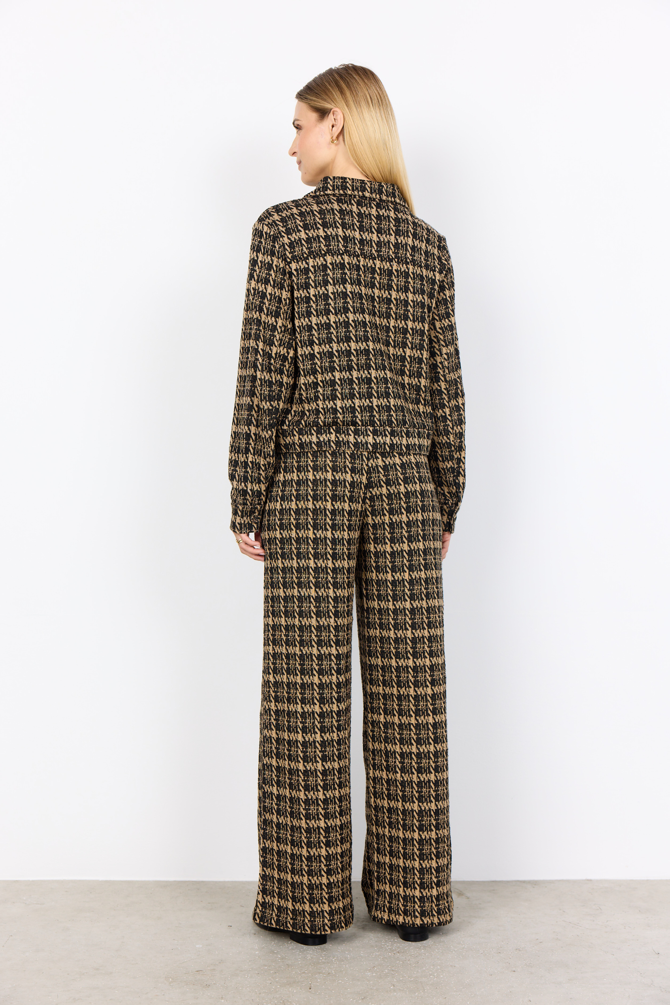 Trendige SOYACONCEPT Indoor-Jacke VIBE mit Hahnentritt-Print in Schwarz-Beige. Jetzt online & im Modehaus in Garrel entdecken.