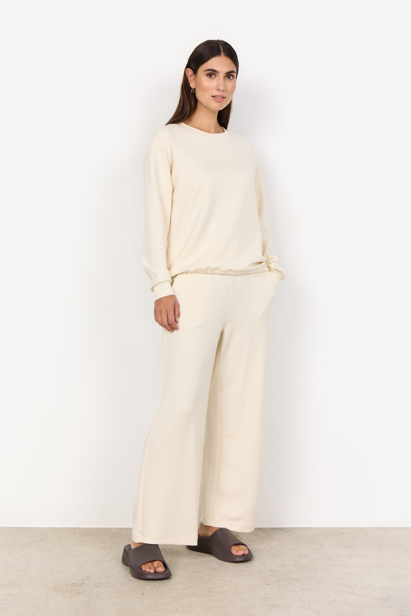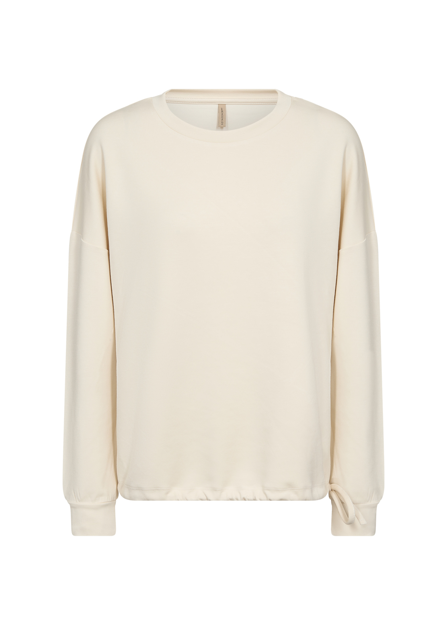 SC-Banu 212 ist ein gehobenes Sweatshirt aus einer weichen Mischung aus Modal, Polyester und Elastan. Das Sweatshirt hat einen Rundhalsausschnitt, lange Ärmel, eine lässige Passform und einen eleganten Kordelzug am Saum für einen femininen Touch. Tragen Sie es über einem klassischen Shirt und einer Leinenhose für einen klassischen Look.