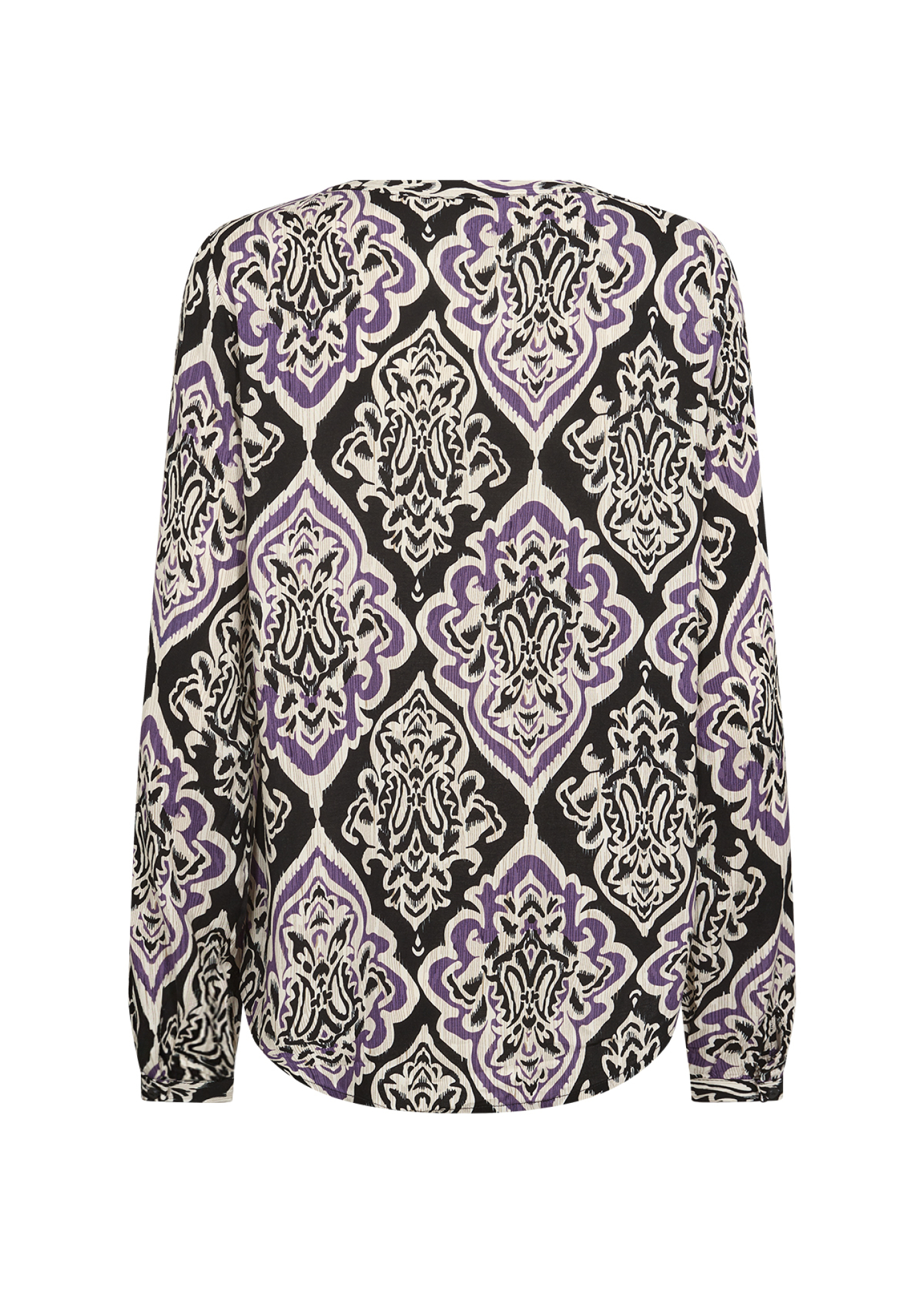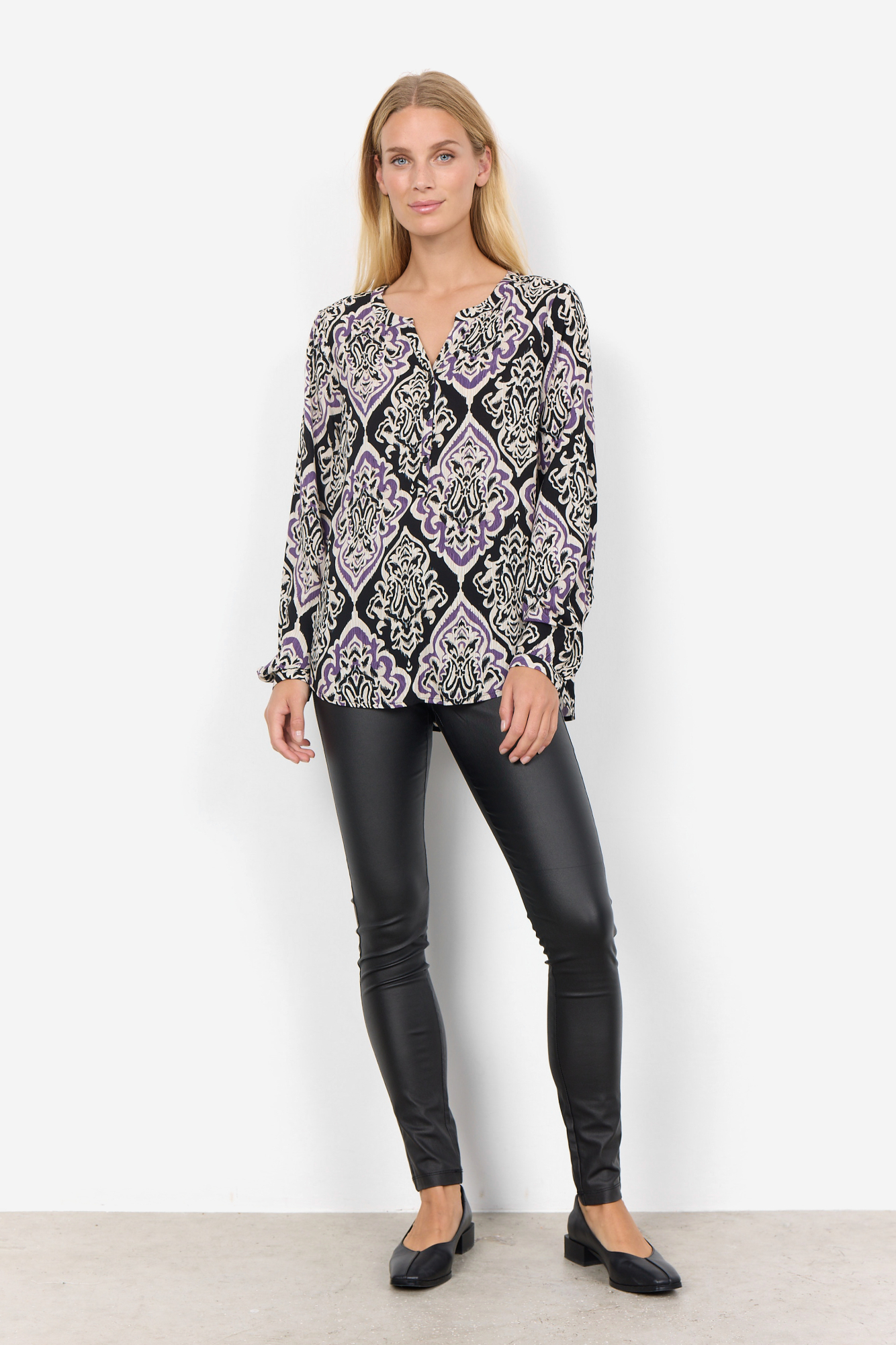 SC-Verina 1 ist eine feminine Bluse aus 100% LENZING™ ECOVERO™ Viskose. Die Bluse hat einen geteilten Ausschnitt, eine Knopfleiste, lange Ärmel, eine lockere Passform und einen schönen Druck. Kombiniere diese schöne Bluse mit einer Jeans und Sneakers für einen schönen Alltagslook.