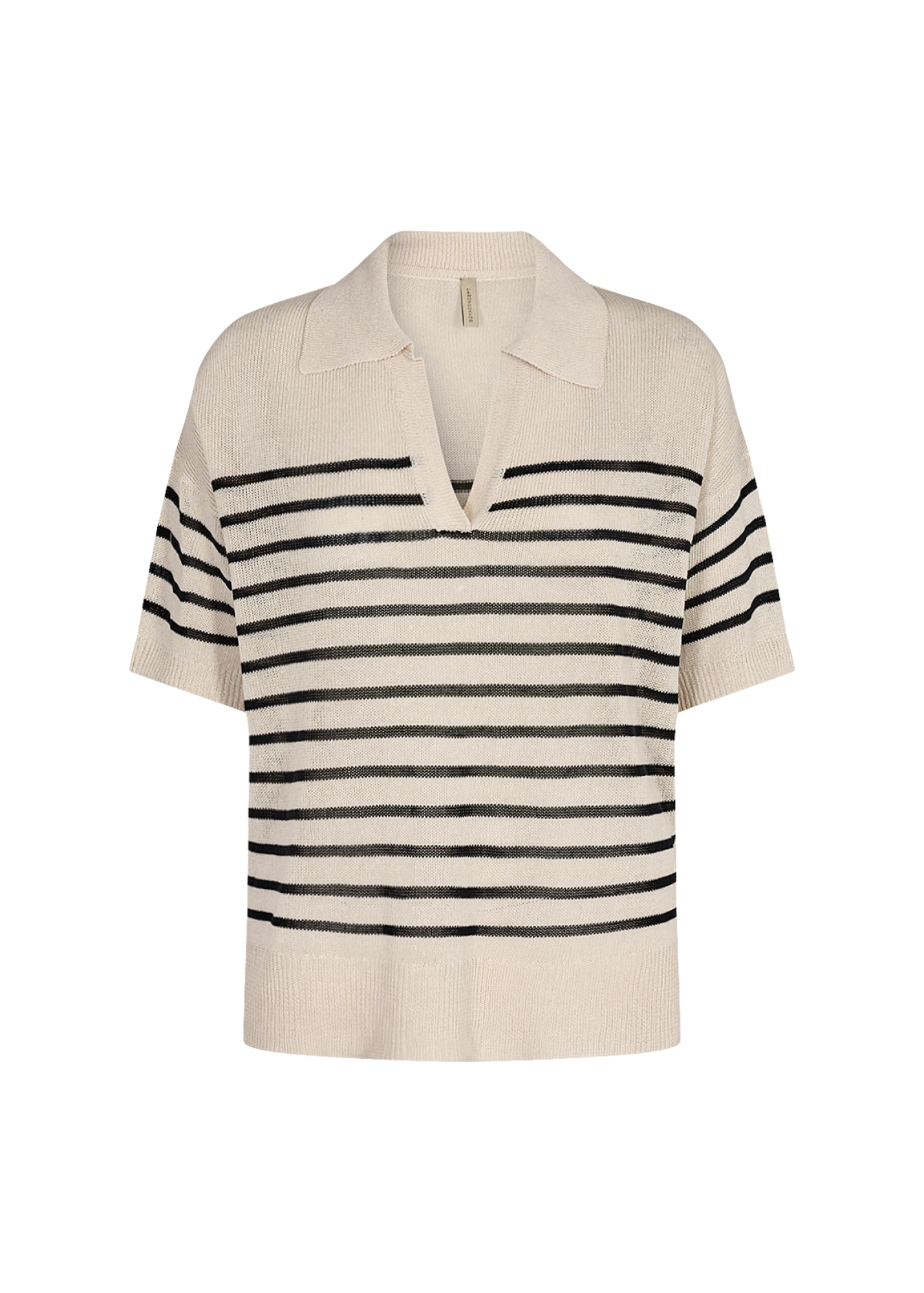 SC-Luanna 2 ist ein klassischer Pullover in einer schönen Mischung aus Acryl, Tencel und Leinen. Der Pullover hat eine lockere Passform, einen V-Ausschnitt, einen Polokragen, ein gestreiftes Muster und eine Strickqualität. Kombiniere ihn mit einer Anzughose und Loafers für einen klassischen Look.
