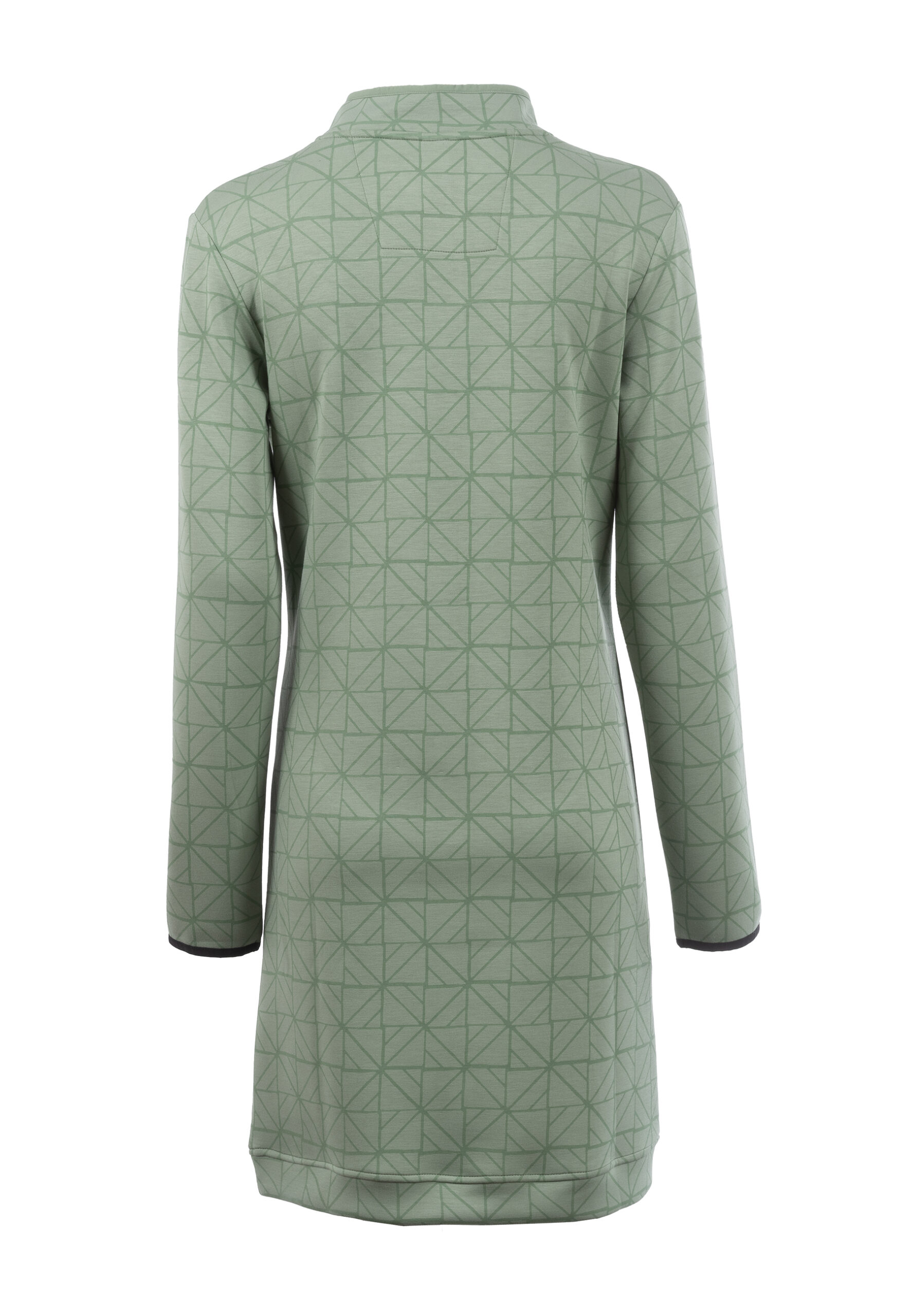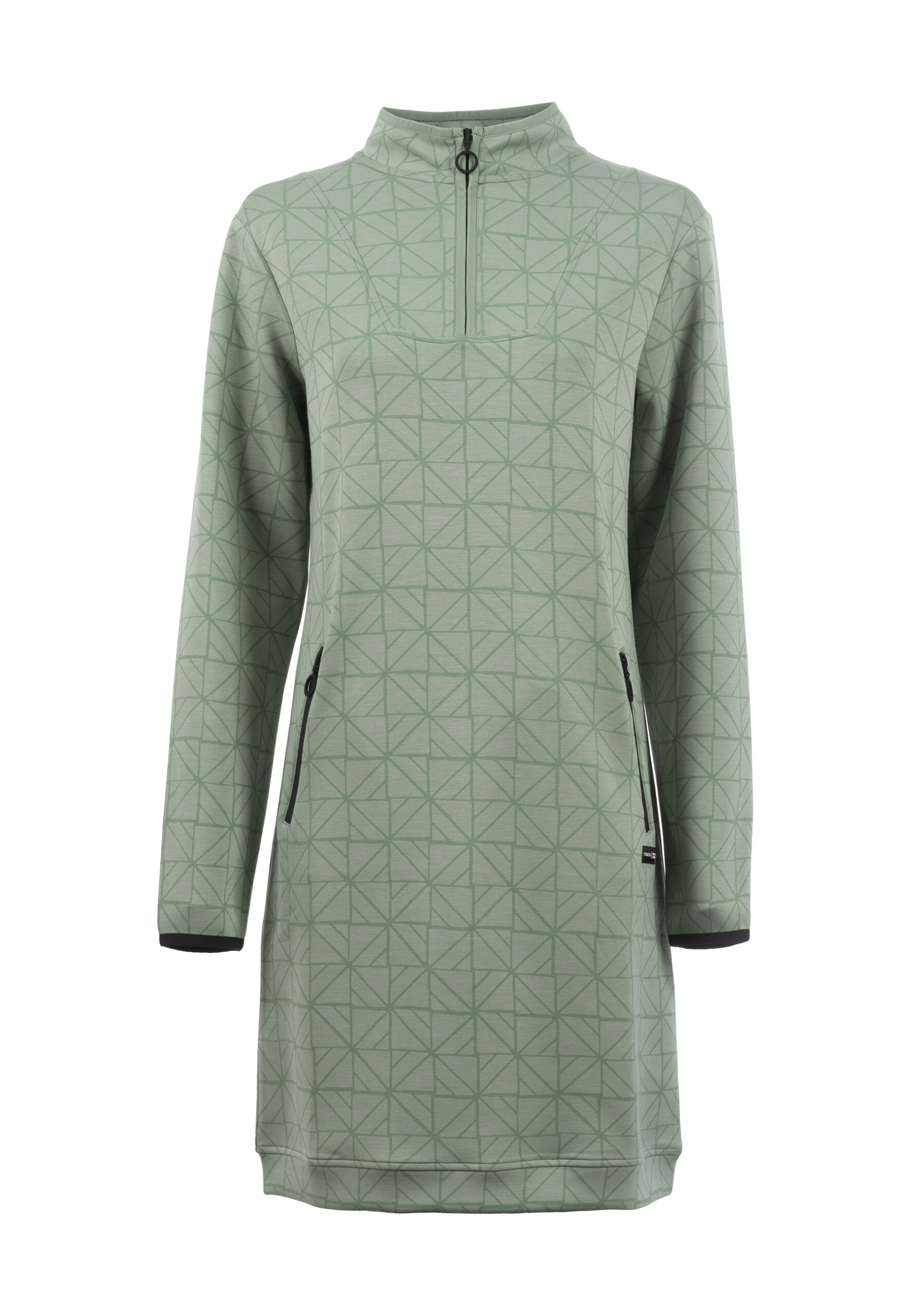 Sweatshirtkleid mit Troyerkragen und verborgenem Reißverschluss. Ein modernes, graphisches Allover-Muster definiert den Look. Im unteren Bereich mit Reißverschlusstaschen.
