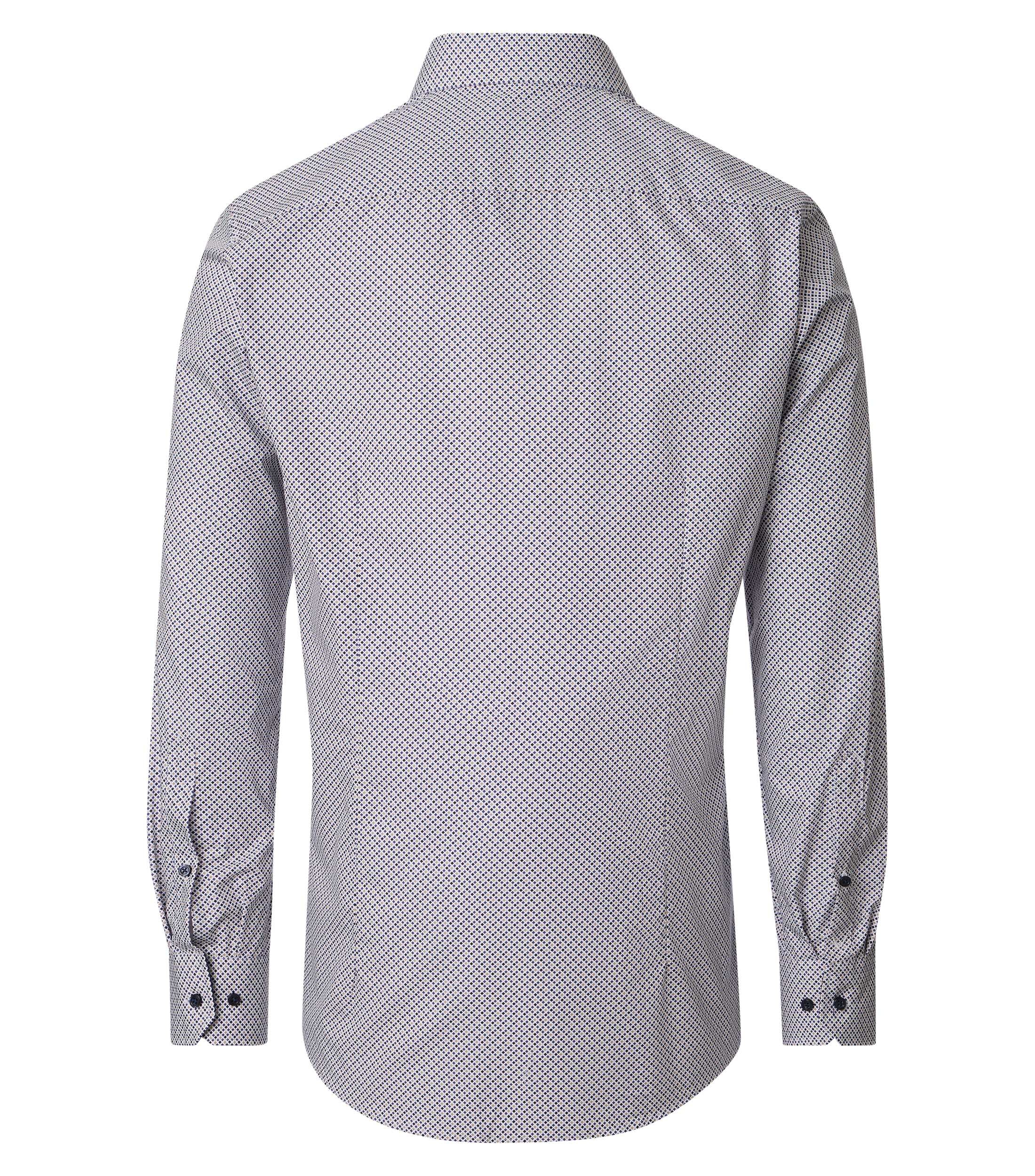 Das Herrenhemd mit langen Ärmeln bietet durch die bequeme Comfort-Fit-Passform hohen Tragekomfort und überzeugt mit einem modernen Print, der auf hochwertiger Baumwolle angebracht ist. Der klassische Button-Down-Kragen unterstreicht den professionellen Look des Hemdes, eignet sich aber auch ideal für entspannte Anlässe, Feste oder einen Stadtbummel. Das Hemd lässt sich vielseitig kombinieren, beispielsweise mit Fliege und Einstecktuch sowie mit Stoffhose, Weste oder Sakko. Das stilvolle Design macht dieses Langarmhemd zu einer gelungenen Wahl für zahlreiche Gelegenheiten.
